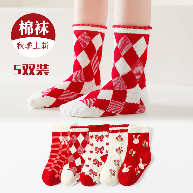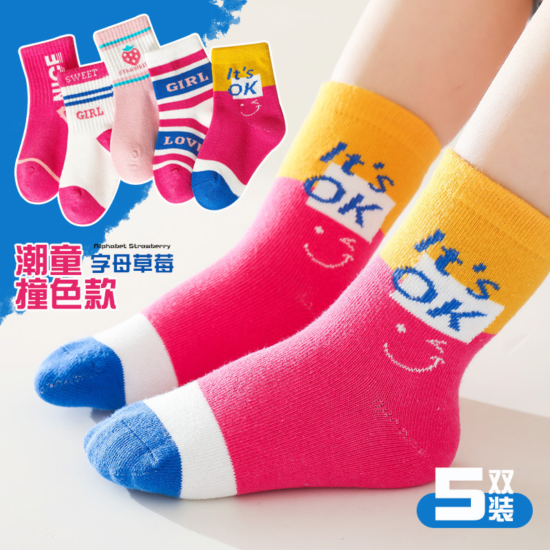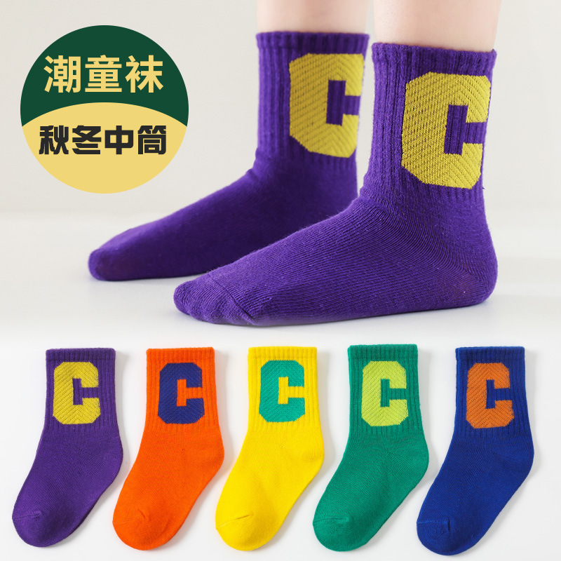 소년과 소녀를위한 가을과 겨울 스포츠 조수 양말 5 쌍 대형 어린이 아기 양말 도매 세대스토어 가기