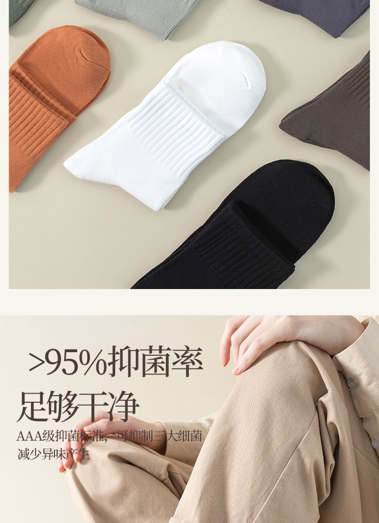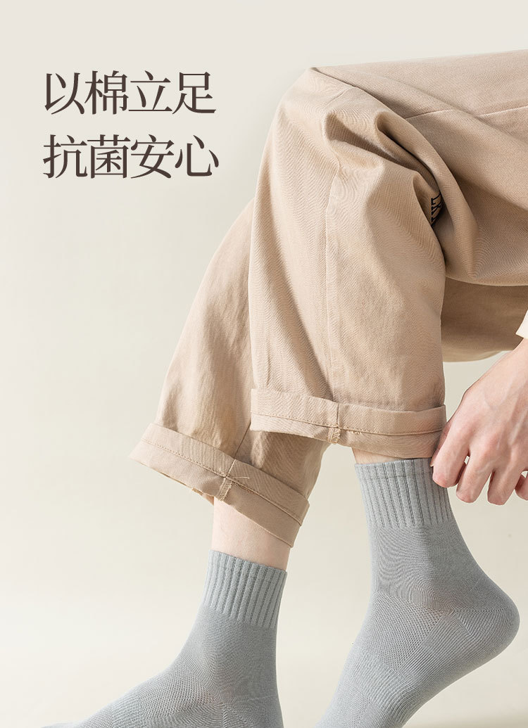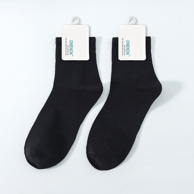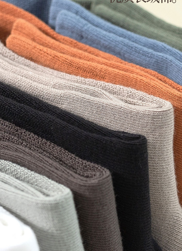 양말 남성용 중간 길이 양말 봄과 가을 순면 항균 탈취제 땀 흡수 통기성 스타킹 두꺼운 단색 남성 스타킹