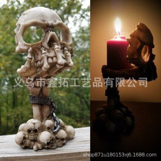 跨境独立站新款骷髅头手掌蜡烛台复活节节日氛围烛台精美树脂烛台