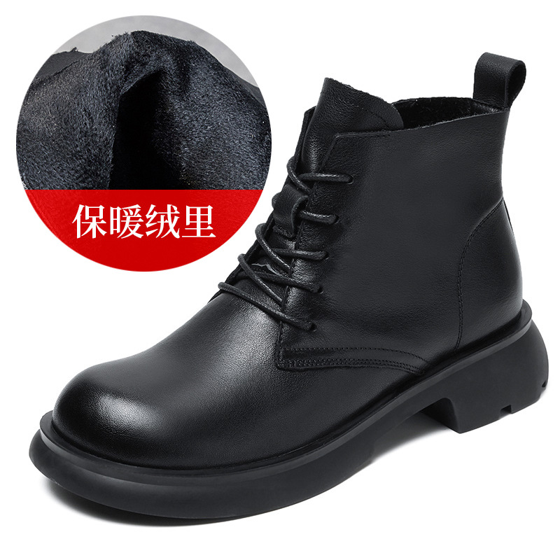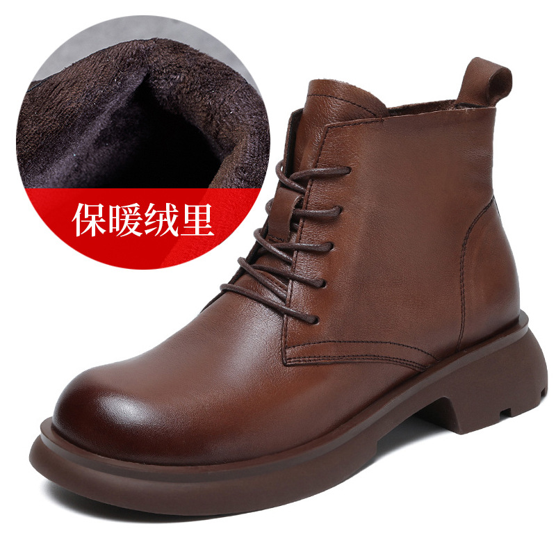 정품 가죽 짧은 부츠 영국 스타일 마틴 부츠 봄과 가을 다재다능한 플랫 소 가죽 싱글 부츠 다크 브라운 복고풍 여성 부츠