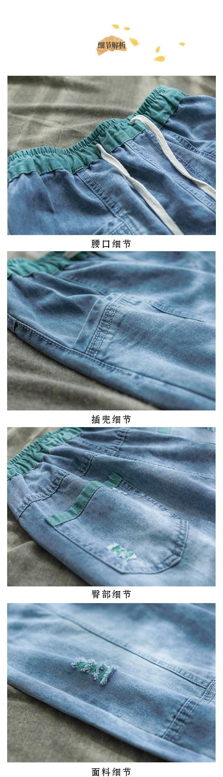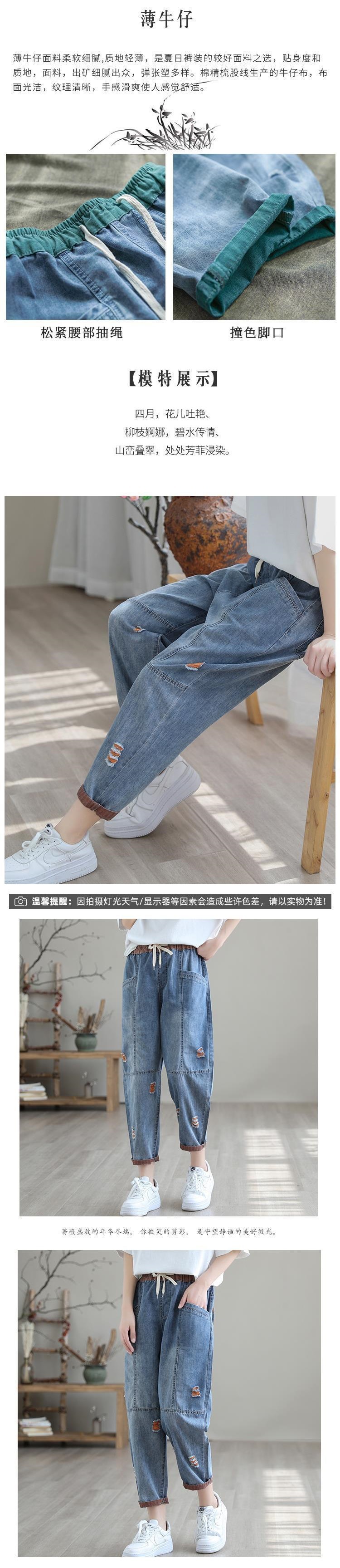 여성용 데미지 9부 데님 팬츠 여름 2025 루즈핏 얇은 슬림핏 신상품 신축성 있는 허리밴드 캐주얼 빅사이즈 하렘 팬츠스토어 가기