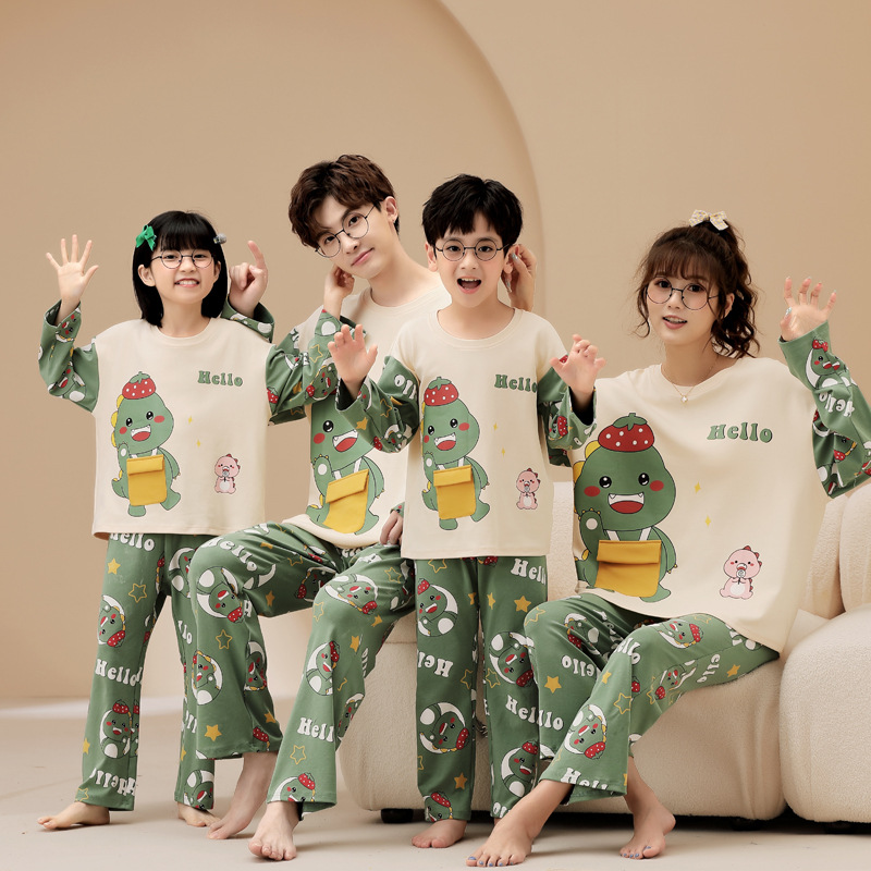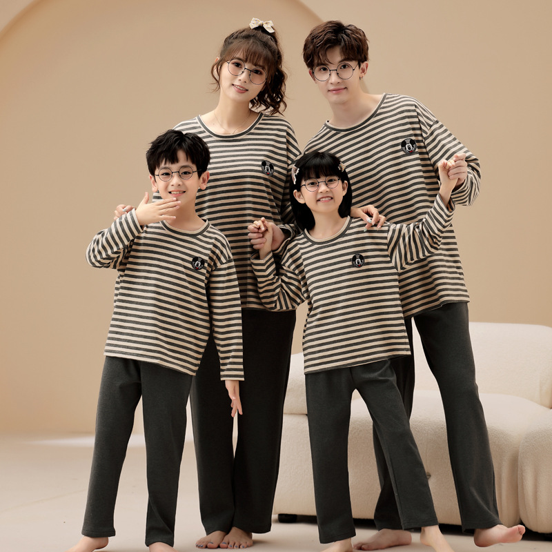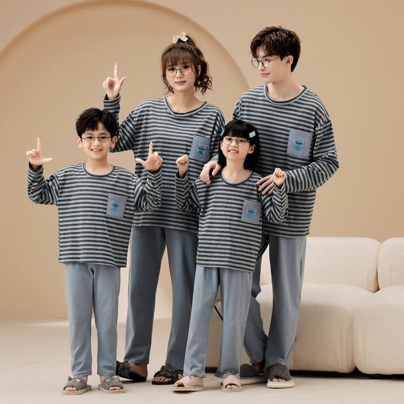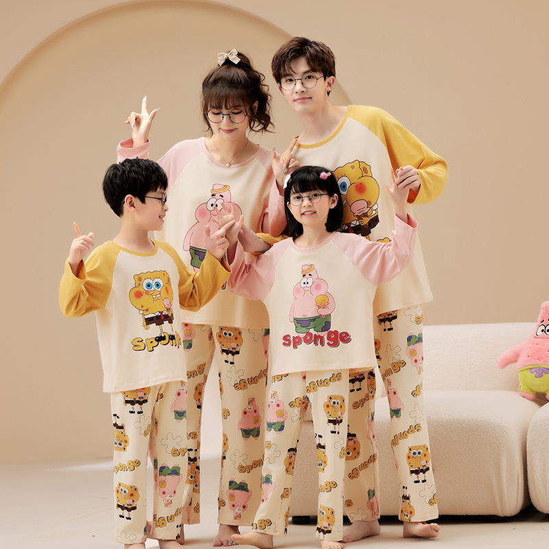 부모-자식 가족 3 입 4 입 순면 봄과 가을 스폰지 아기 긴팔 모녀 자식 중-큰 어린이 잠옷