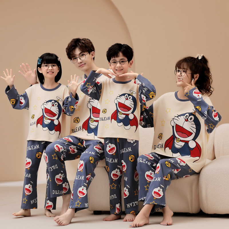 부모-자식 가족 3 입 4 입 순면 봄과 가을 스폰지 아기 긴팔 모녀 자식 중-큰 어린이 잠옷스토어 가기