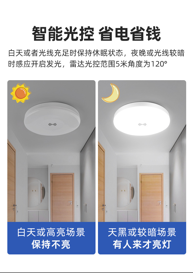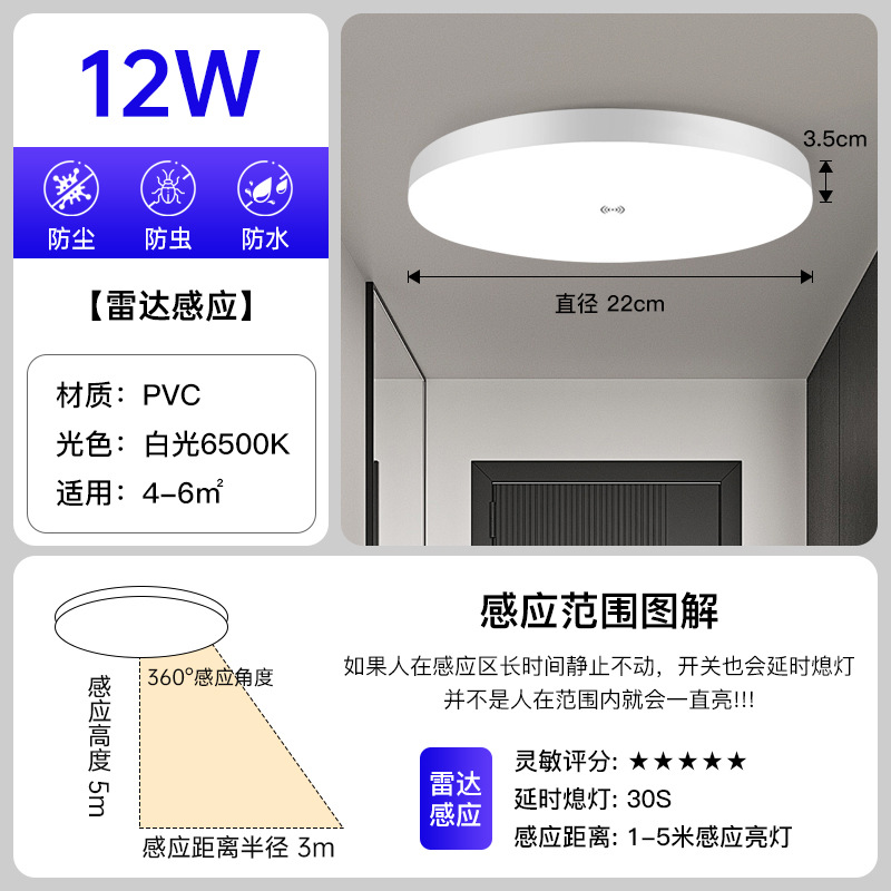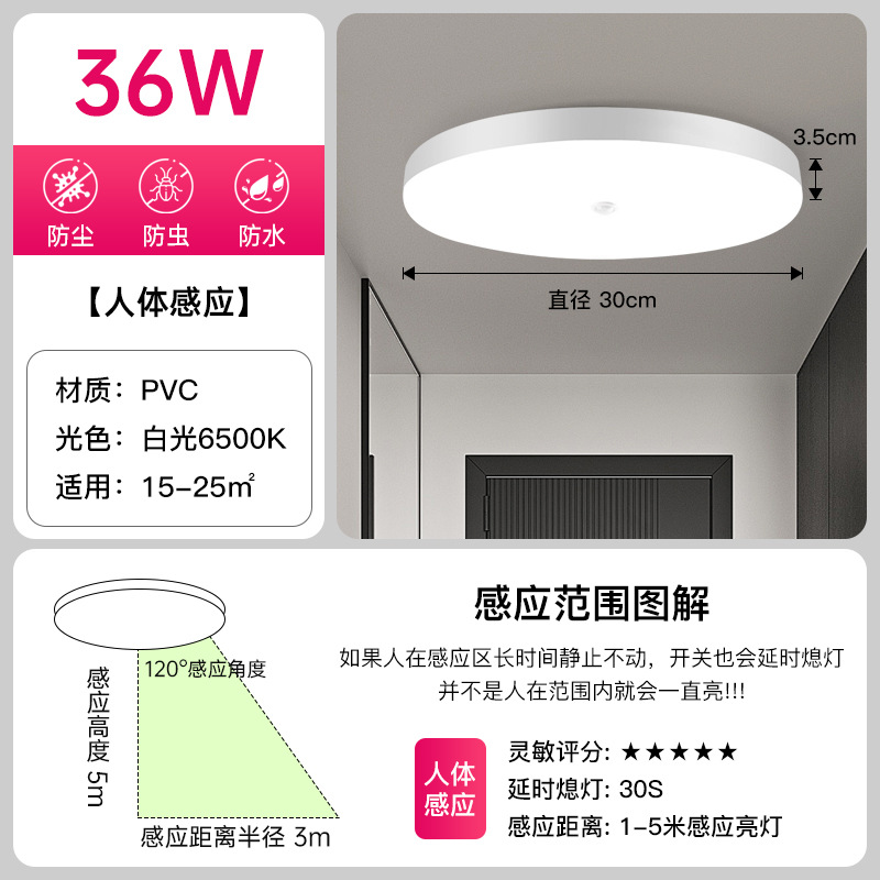Led 유도 천장 빛 음성 제어 지능형 유도 빛 계단 통로 빛 인체 레이더 유도 천장 조명 도매
