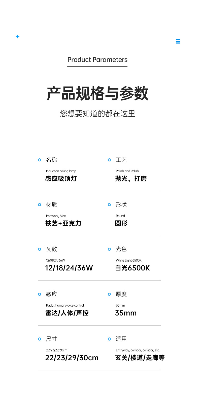 • 18W [음향 및 조명 제어 센서] 천장 조명 23cm