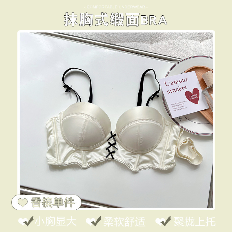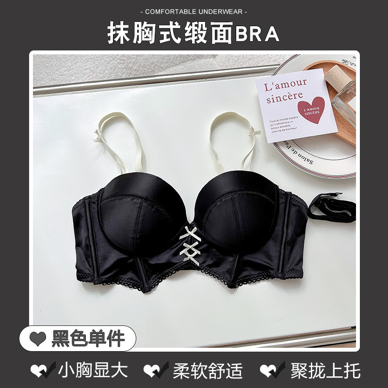 2558 스트랩리스 속옷 여성용 미끄럼 방지 여름 작은 가슴 푸시 업 대형 스틸 링 없음 추적 브래지어 세트스토어 가기