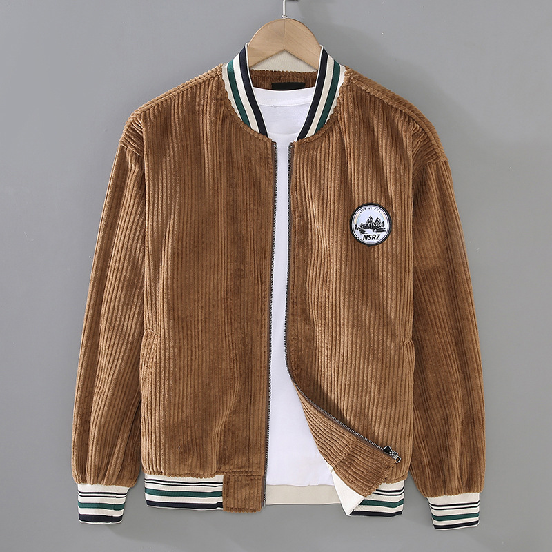 G065 가을 새 남자 청소년 면 코듀로이 두꺼운 줄무늬 야구 재킷 캐주얼 코트 머리카락 세대스토어 가기