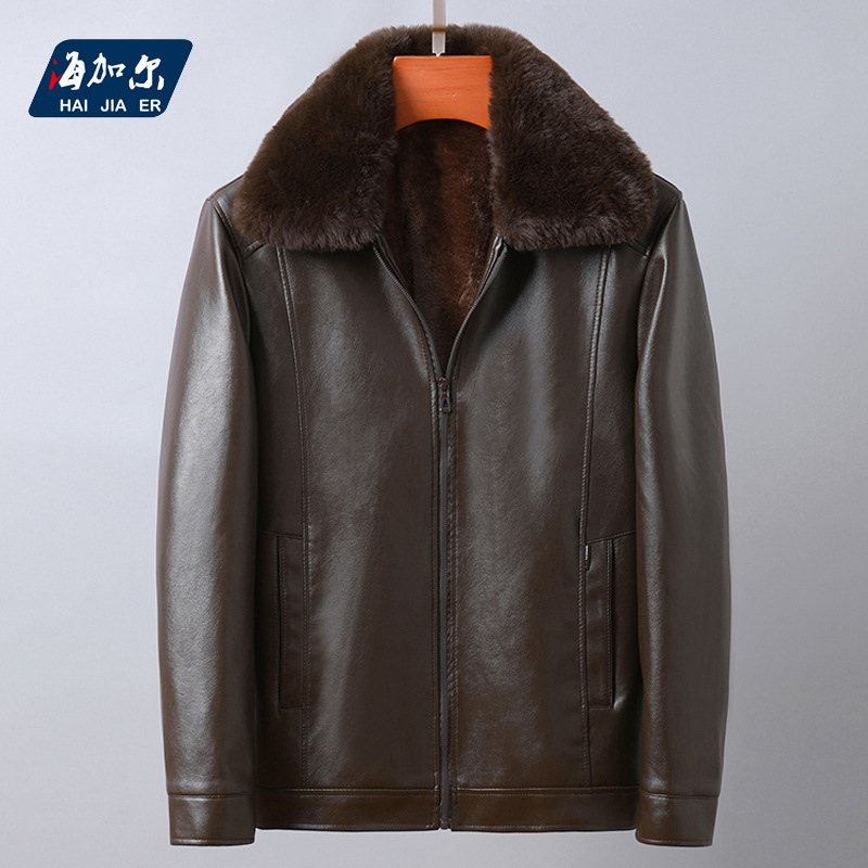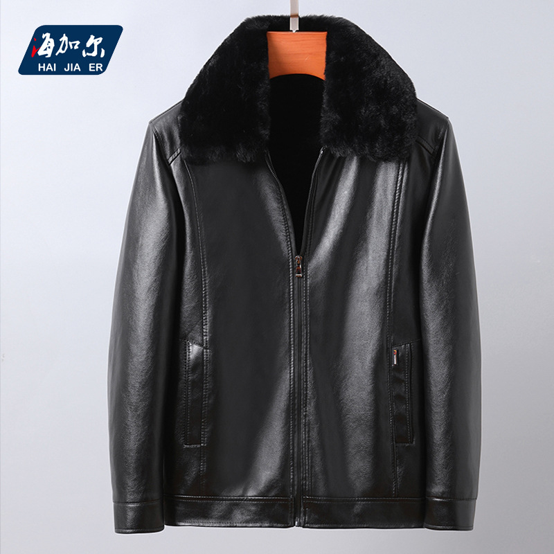 겨울 새로운 중년 및 노인 따뜻한 가죽 남자의 옷깃 모피 칼라 분리 기모 두꺼운 가죽 자켓 비즈니스 재킷스토어 가기