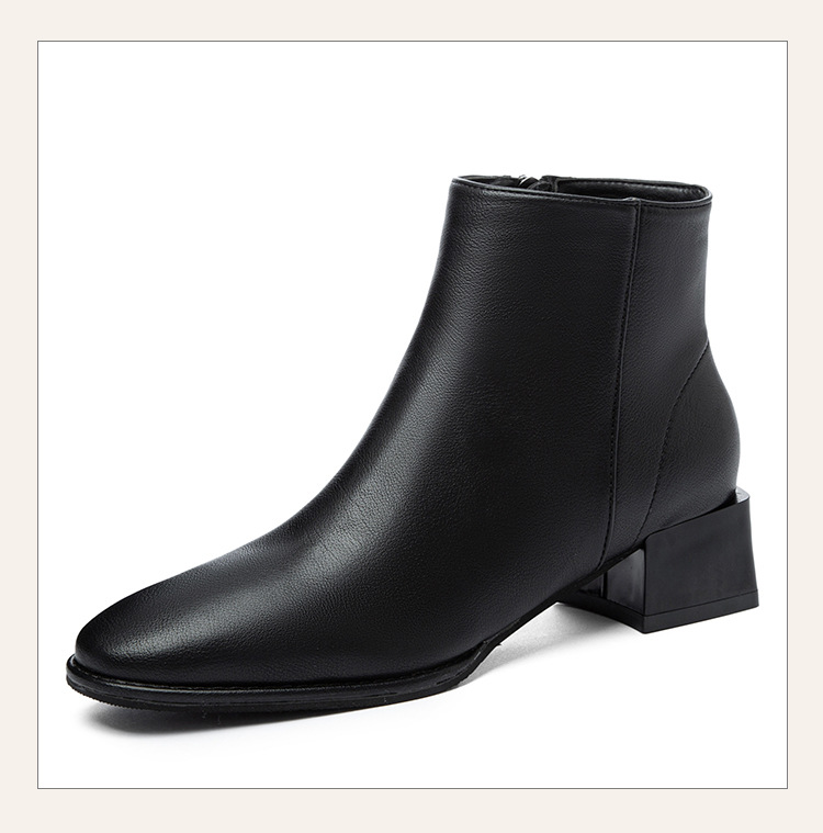 2022 가을과 겨울 새로운 한국 스타일 라운드 토 두꺼운 굽 얇은 부츠 영국 스타일 마틴 부츠 미드 힐 및 리어 지퍼 짧은 부츠 트렌디