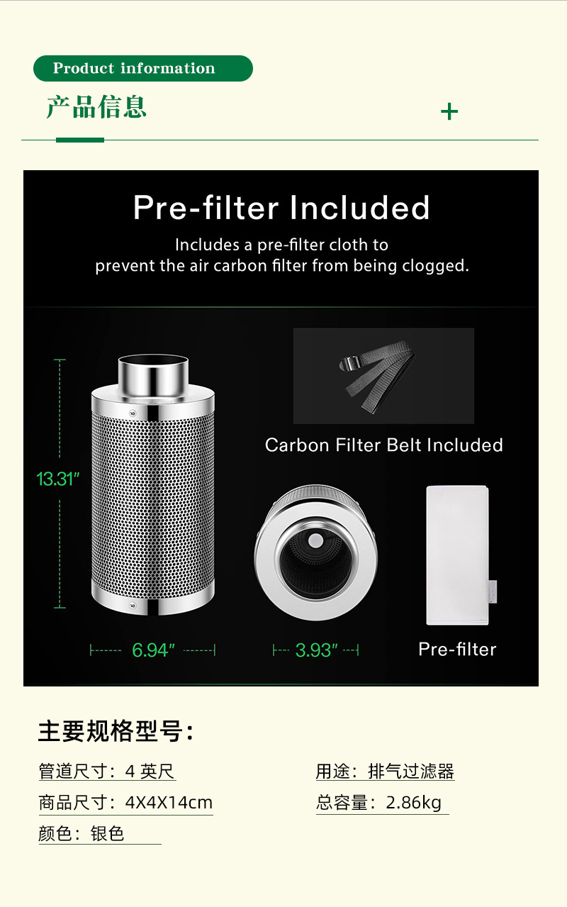 공장 공급 활성탄 공기 필터 수경 식물 텐트 카트리지 활성탄 공기 필터스토어 가기
