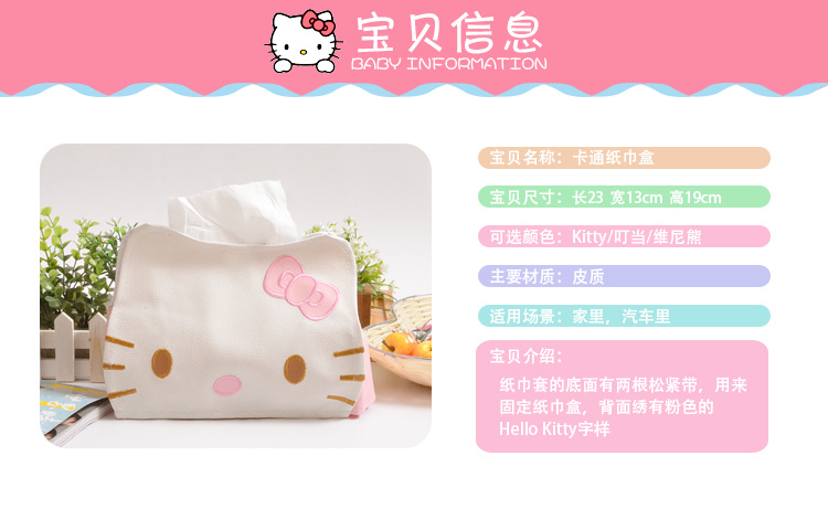hello kitty卡通创意PU皮革抽纸盒套 纸巾盒套居家用纸巾抽