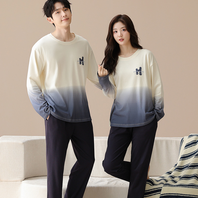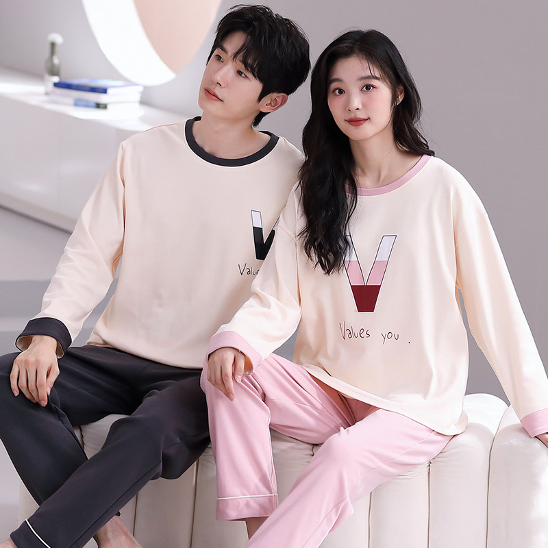 여성용 봄, 가을 순면 커플 잠옷, 한국식 패셔너블한 라운드 넥 홈웨어, 남성용 캐주얼 루즈 웨어러블 슈트스토어 가기