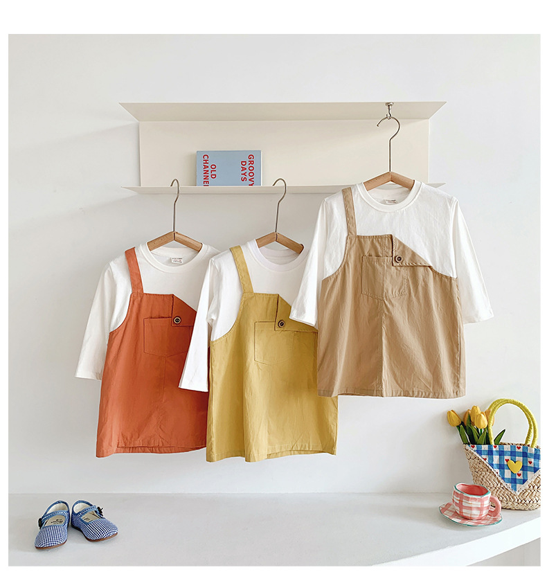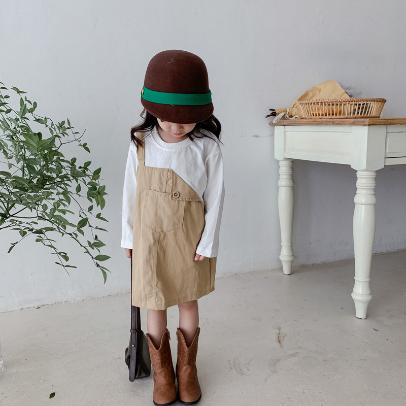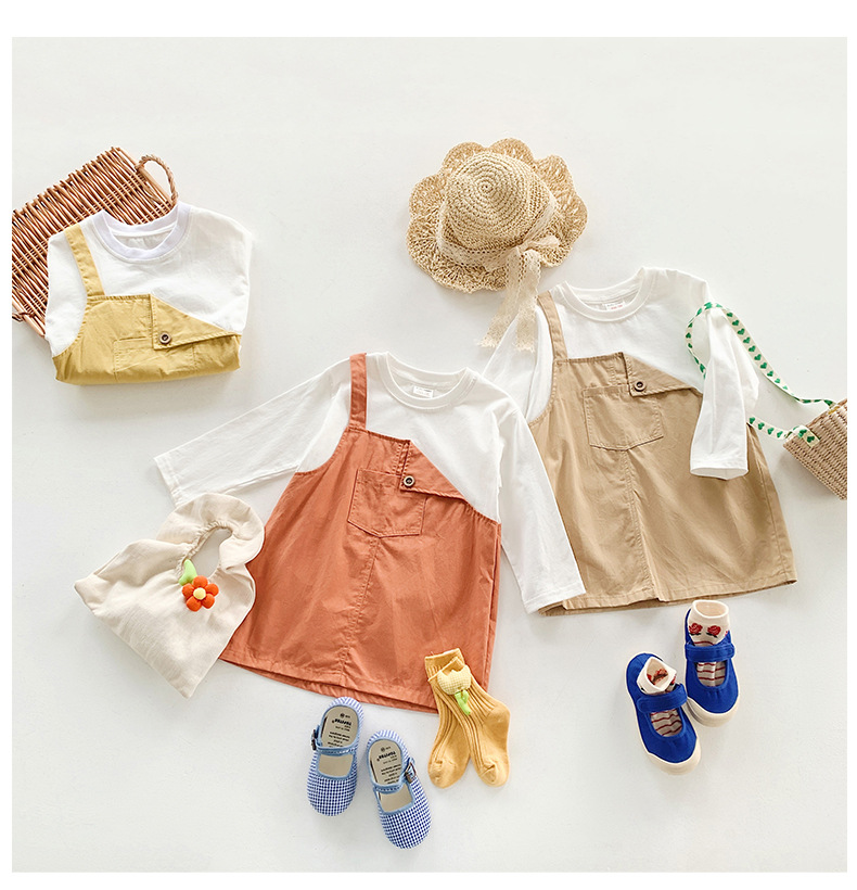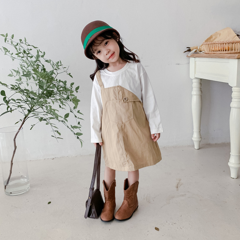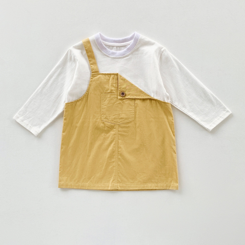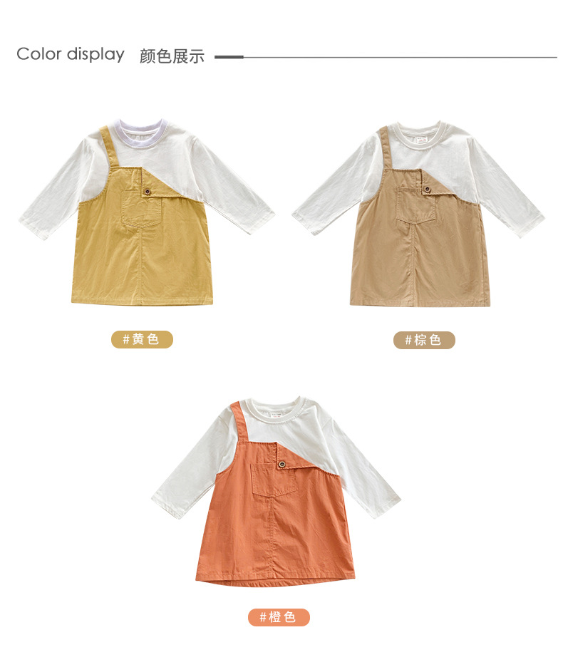 가짜 두 불규칙한 느슨한 소녀 원피스 한국 캐주얼 긴 소매 어린이 치마 2023 가을 도매