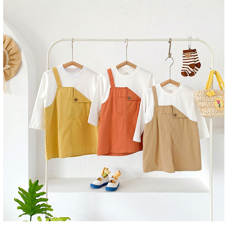 가짜 두 불규칙한 느슨한 소녀 원피스 한국 캐주얼 긴 소매 어린이 치마 2023 가을 도매스토어 가기