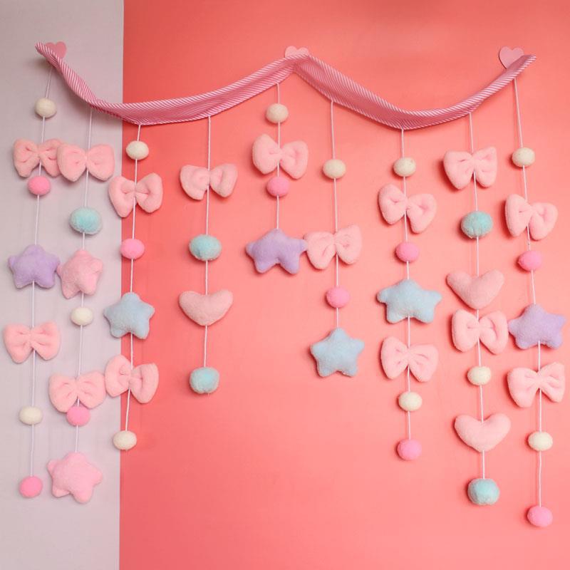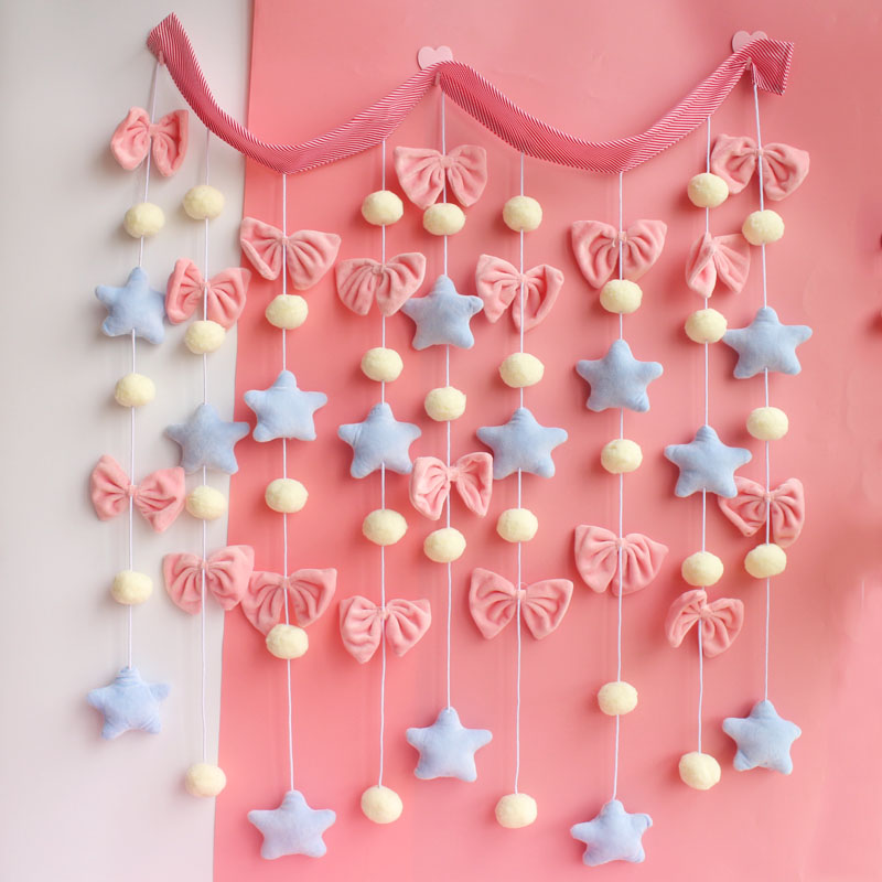 学校幼儿园装饰少女心星星蝴蝶结装饰门帘 卧室公主房帘墙壁装饰
