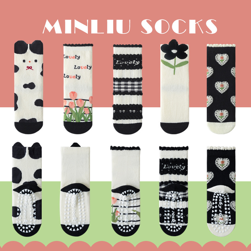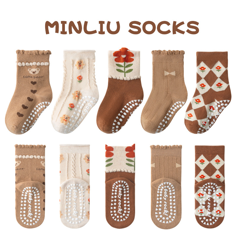 어린이 양말 가을 두리안 접착제 바닥 양말 미드 튜브 양말 트램폴린 양말 1-12 세 어린이면 양말 미끄럼 방지스토어 가기