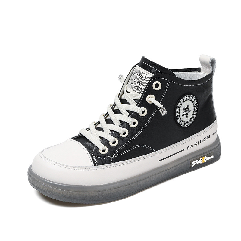 싱글 레이어 신발 여성 봄과 가을 흰색 신발 2022 새로운 정품 가죽 힘줄 바닥 캐주얼 부드러운 바닥 하이 탑 여성 신발 평평한 바닥 핫스토어 가기