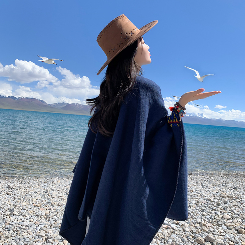 사막 여행 민족 토템 빨간 스카프 숄 티베트 신장 여행 사진 패션 큰 케이프 따뜻한