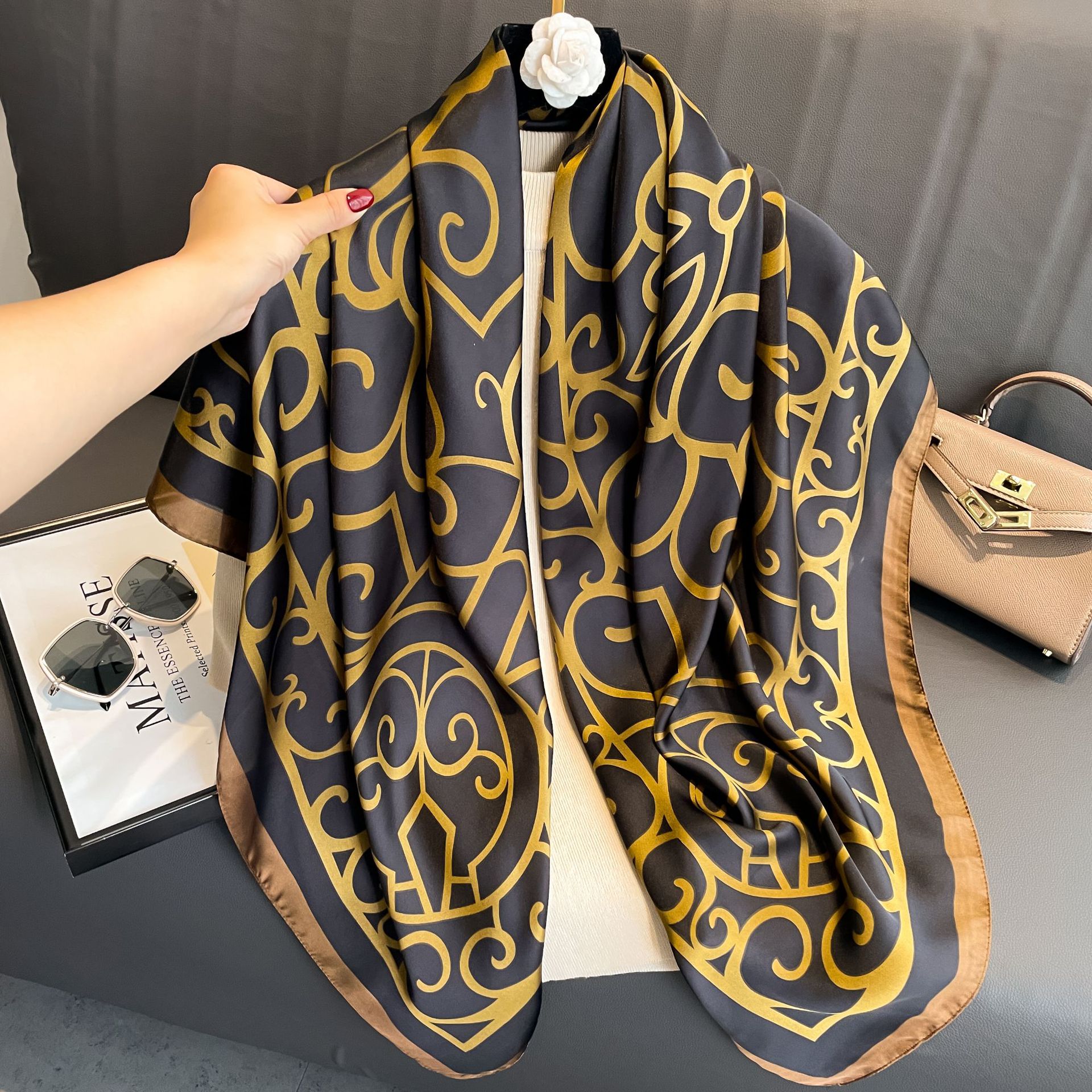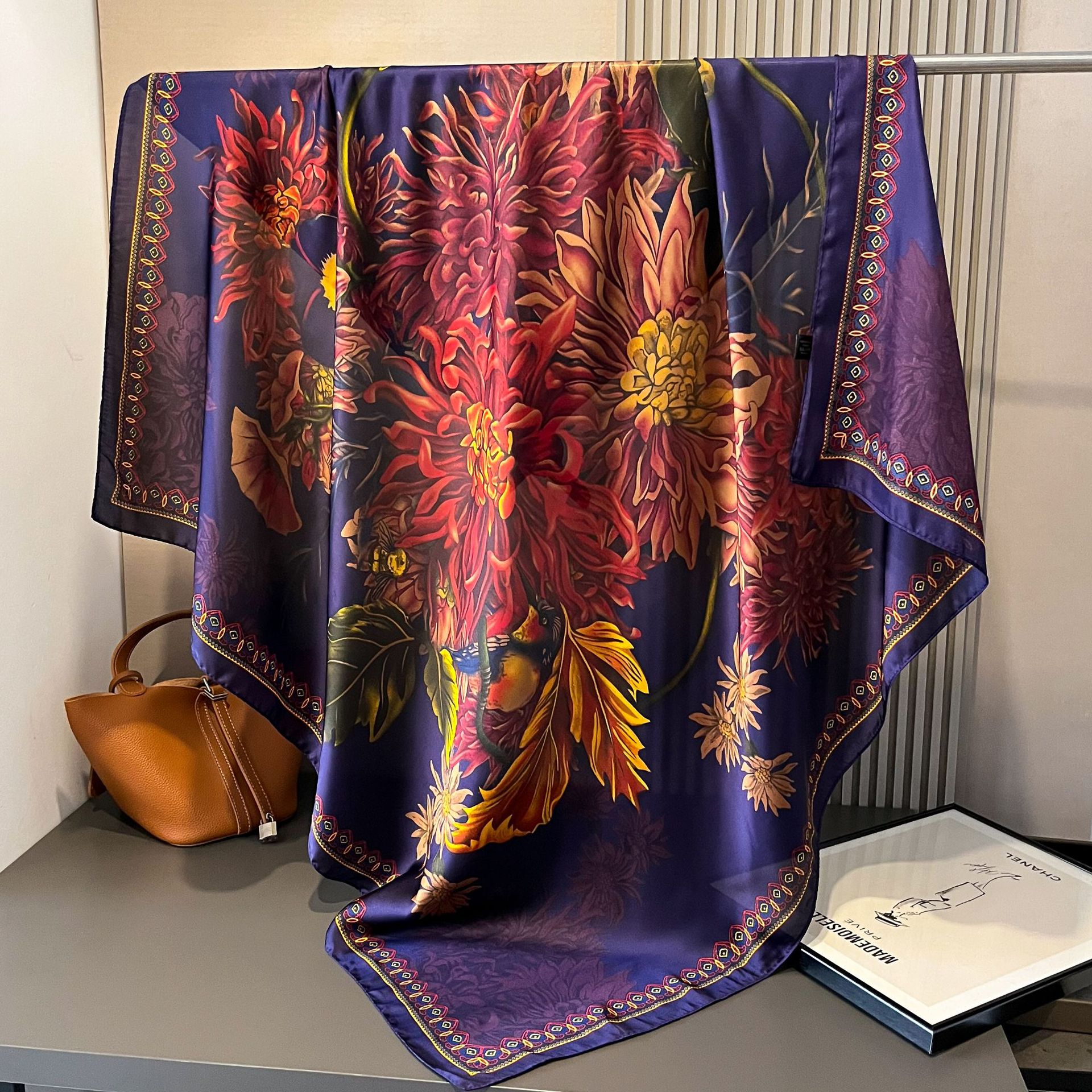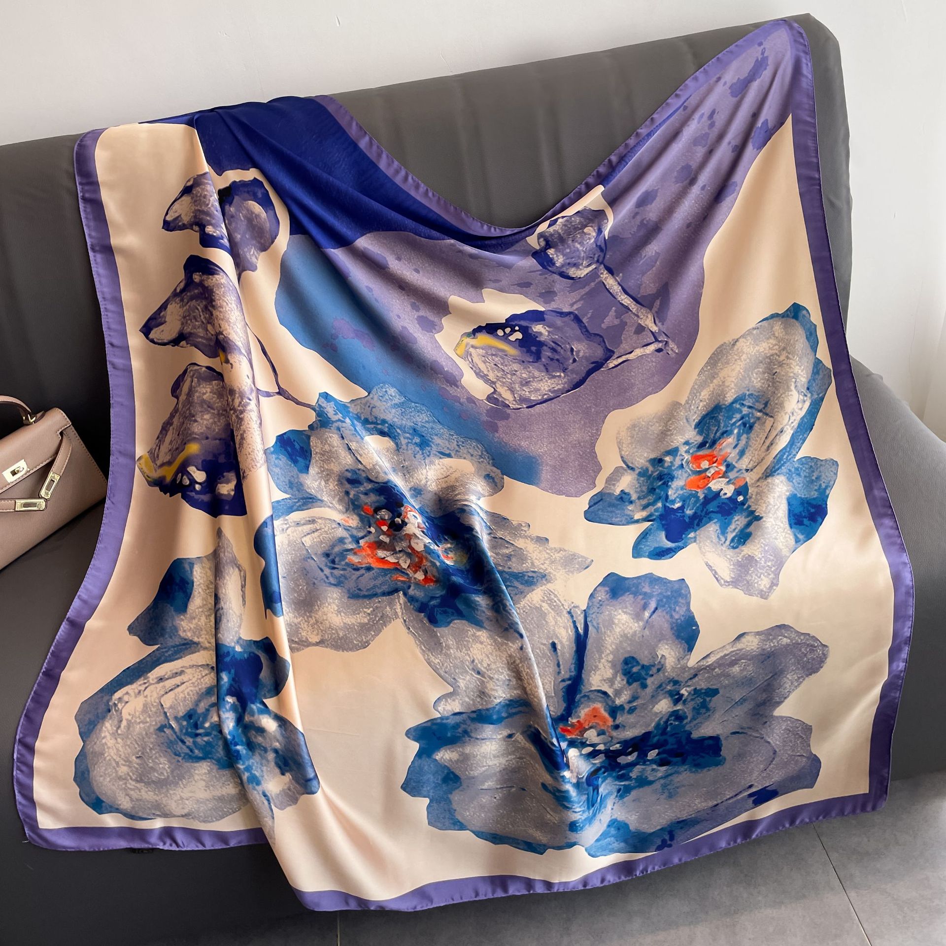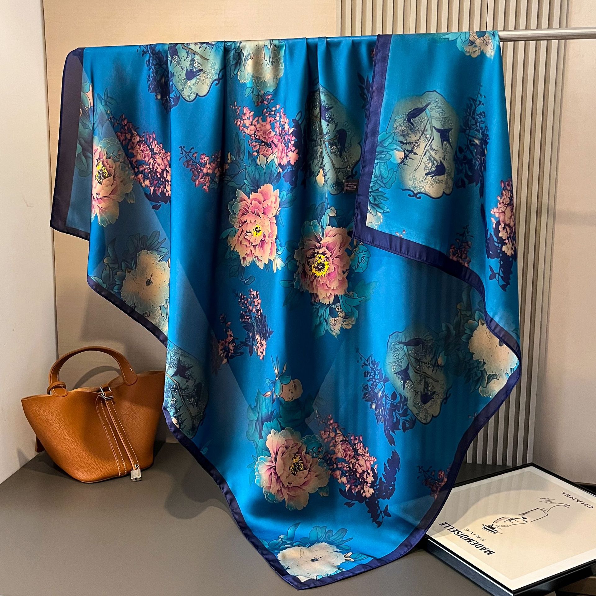 새로운 110x110 사각 스카프 꽃과 새 새틴 프린트 실크 스카프 리 진 단조 모조 실크 터번 S11098 도매스토어 가기
