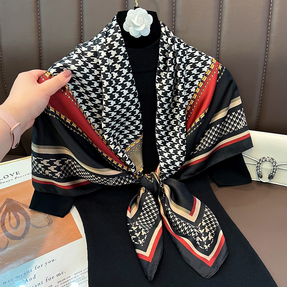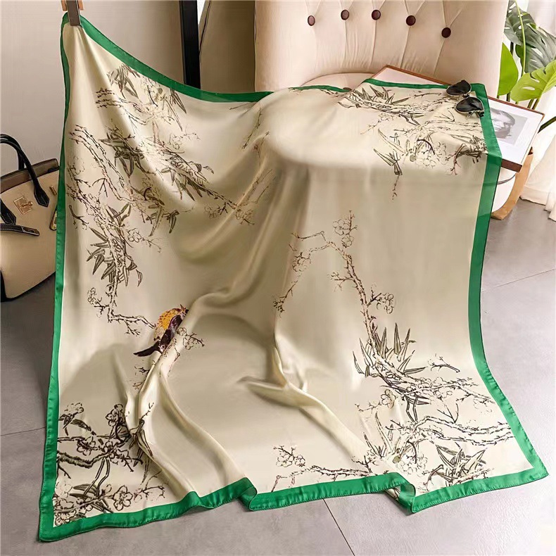 새로운 110x110 사각 스카프 꽃과 새 새틴 프린트 실크 스카프 리 진 단조 모조 실크 터번 S11098 도매