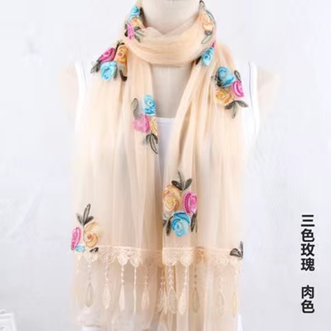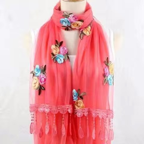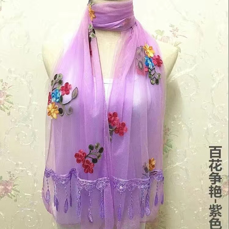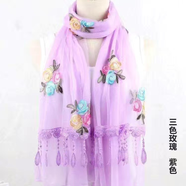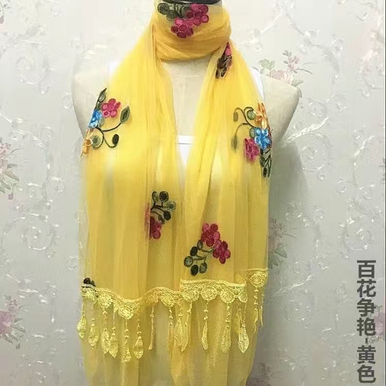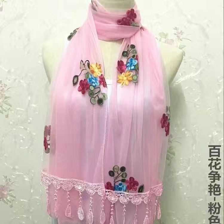 봄과 여름 한국 스타일 스카프 여성용 실크 스카프 자수 스카프 가을과 겨울 더블 스티칭 레이스 단색 스카프 여성