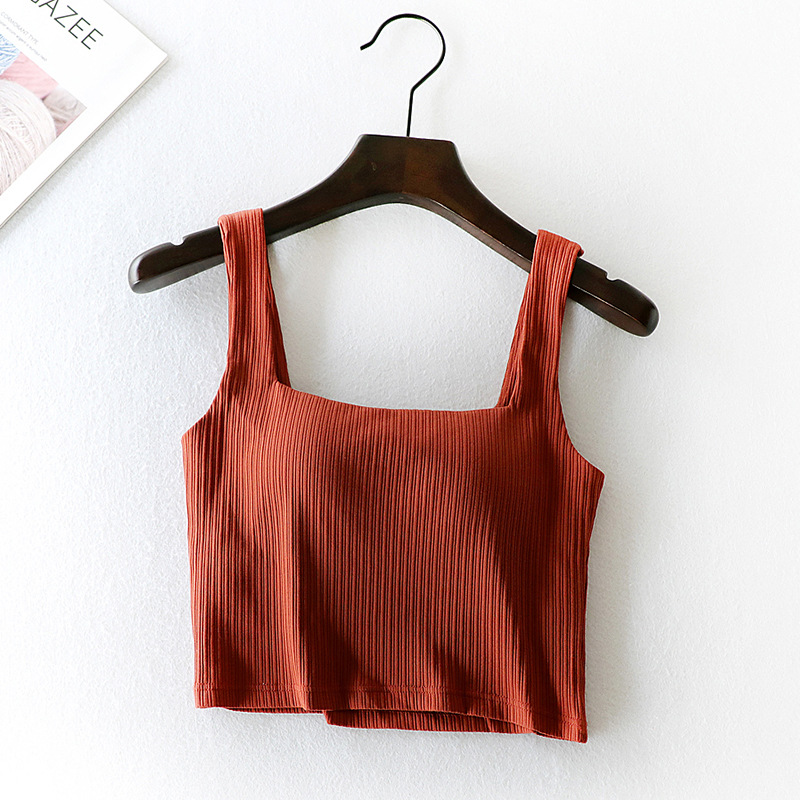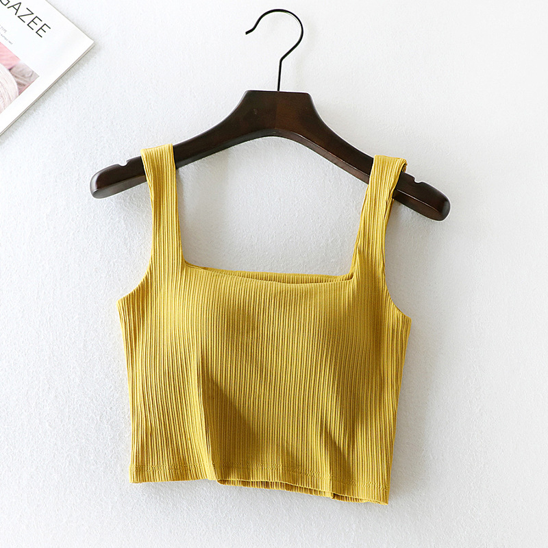 가슴 패드 칼라 배꼽 작은 슬링 슬림 핏 이너베이스 뷰티 백 머리를 착용 할 수있는 여성용 여름 조끼스토어 가기