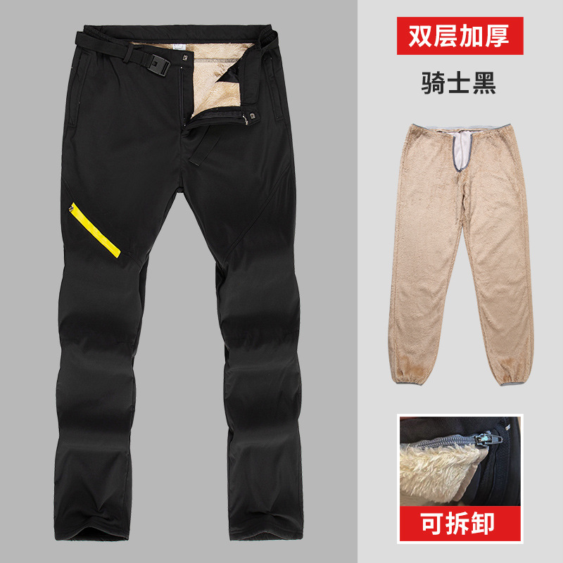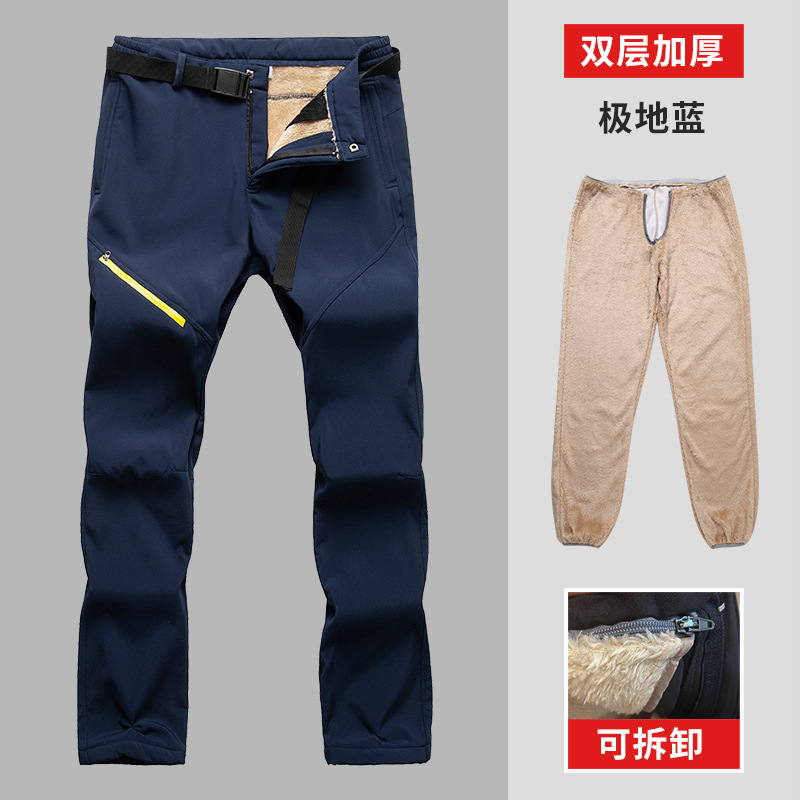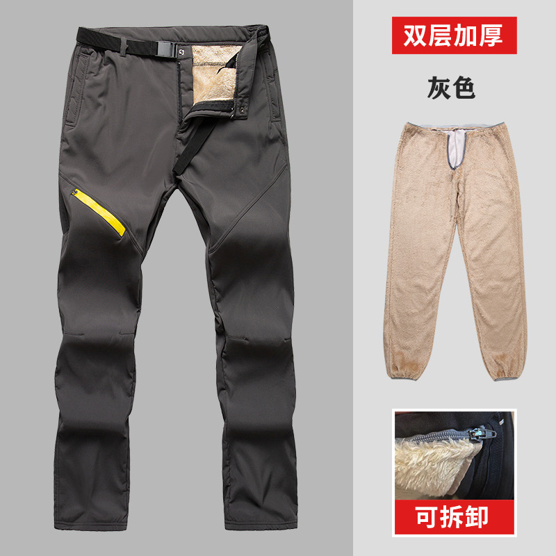 남자의 부드러운 쉘 등산 야외 바지 여자의 가을과 겨울 기모 두꺼운 따뜻한 느슨한 방수 양털 스키 바지