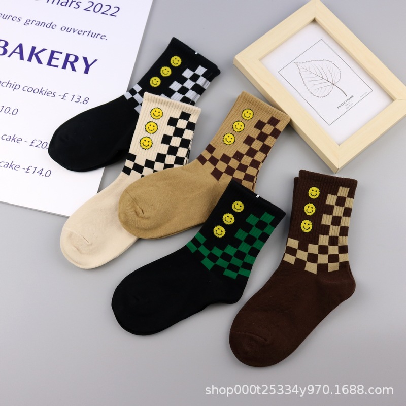 가을과 겨울의 세대 새로운 바둑판 어린이 웃는 얼굴 면 양말 조수 어린이 학생 양말스토어 가기