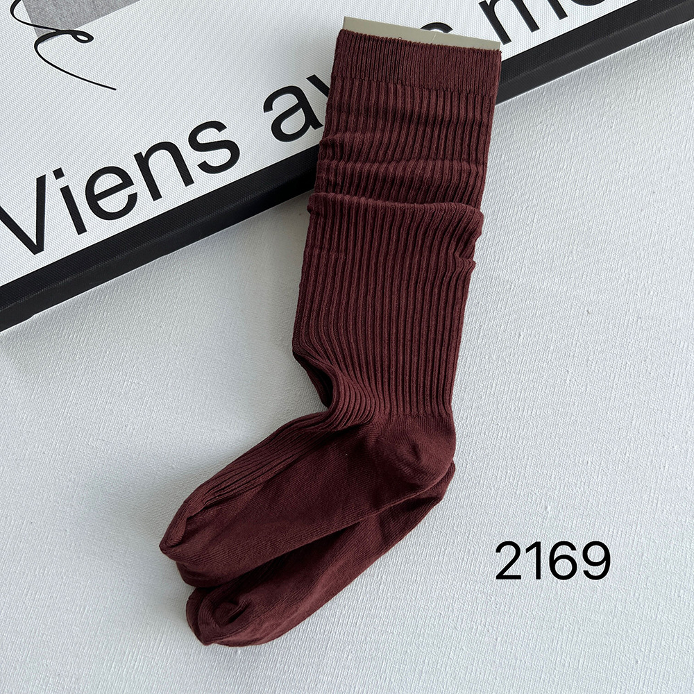 대형 SD-2169 슈퍼 소프트 커프 양말 세로 줄무늬 면 양말 스택 봄과 가을 중간 두께 유행 양말 여성용 중간 길이 양말