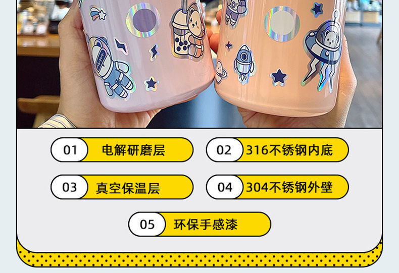 작은 차 다이어리 어린이 단열 물컵 316 스테인레스 스틸 물병 소년 소녀 학교를 위한 대용량 낙하 방지 흡입 컵