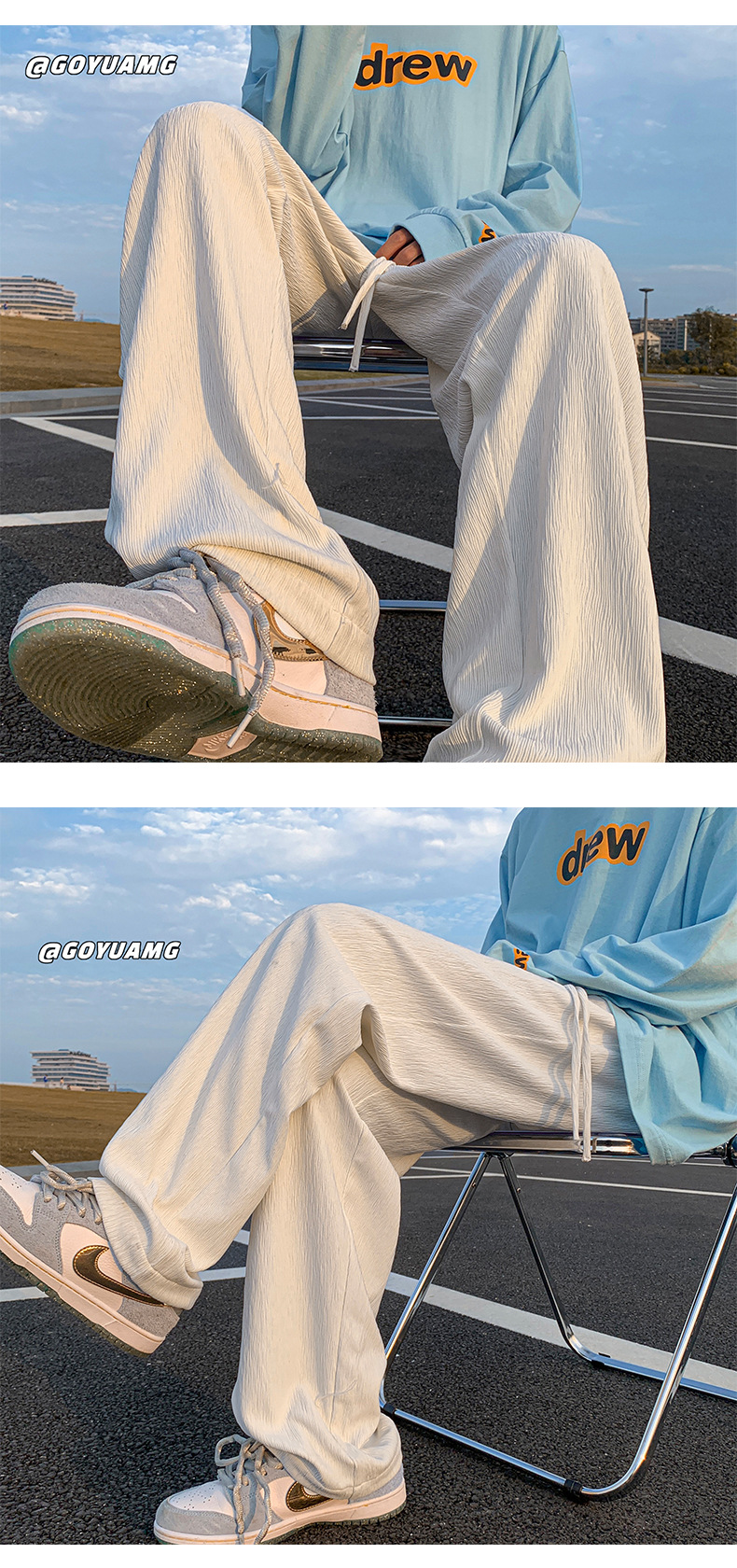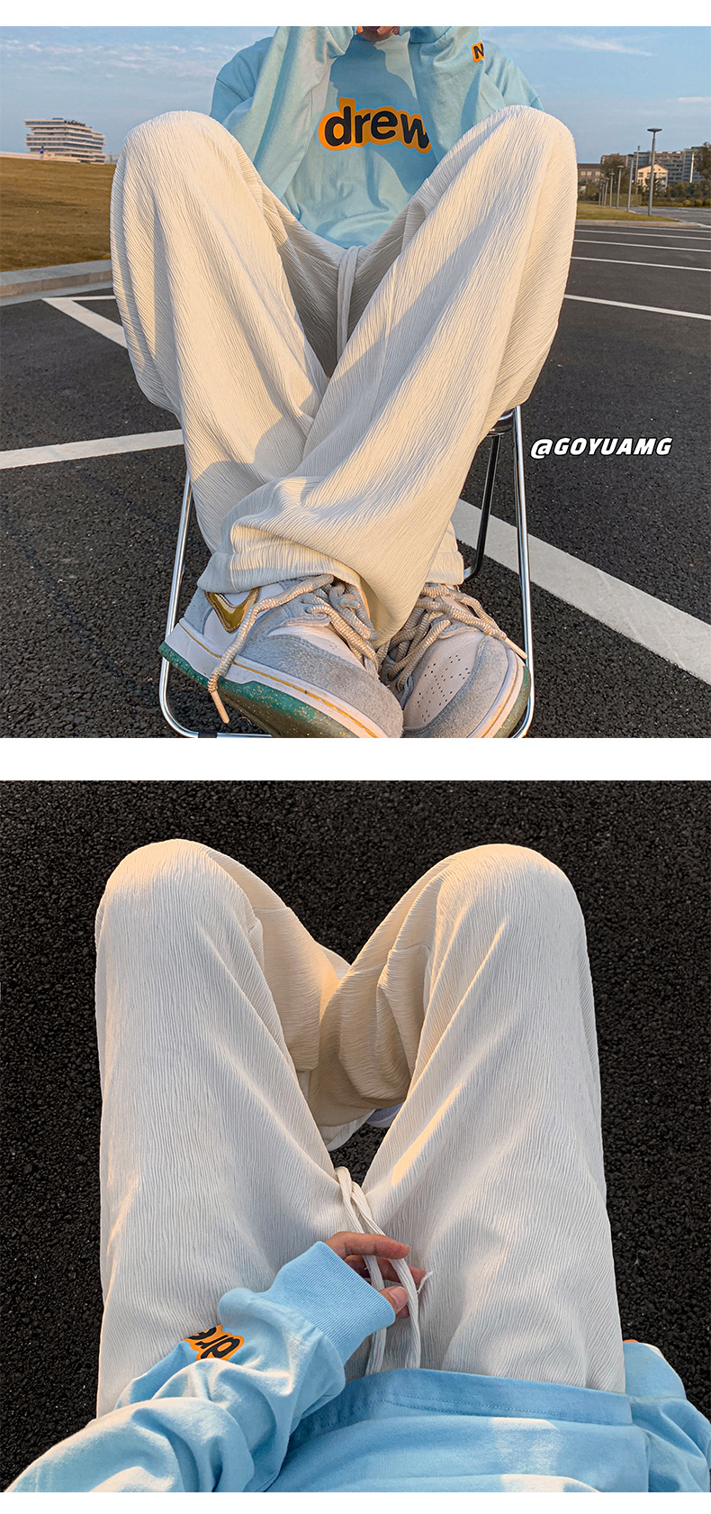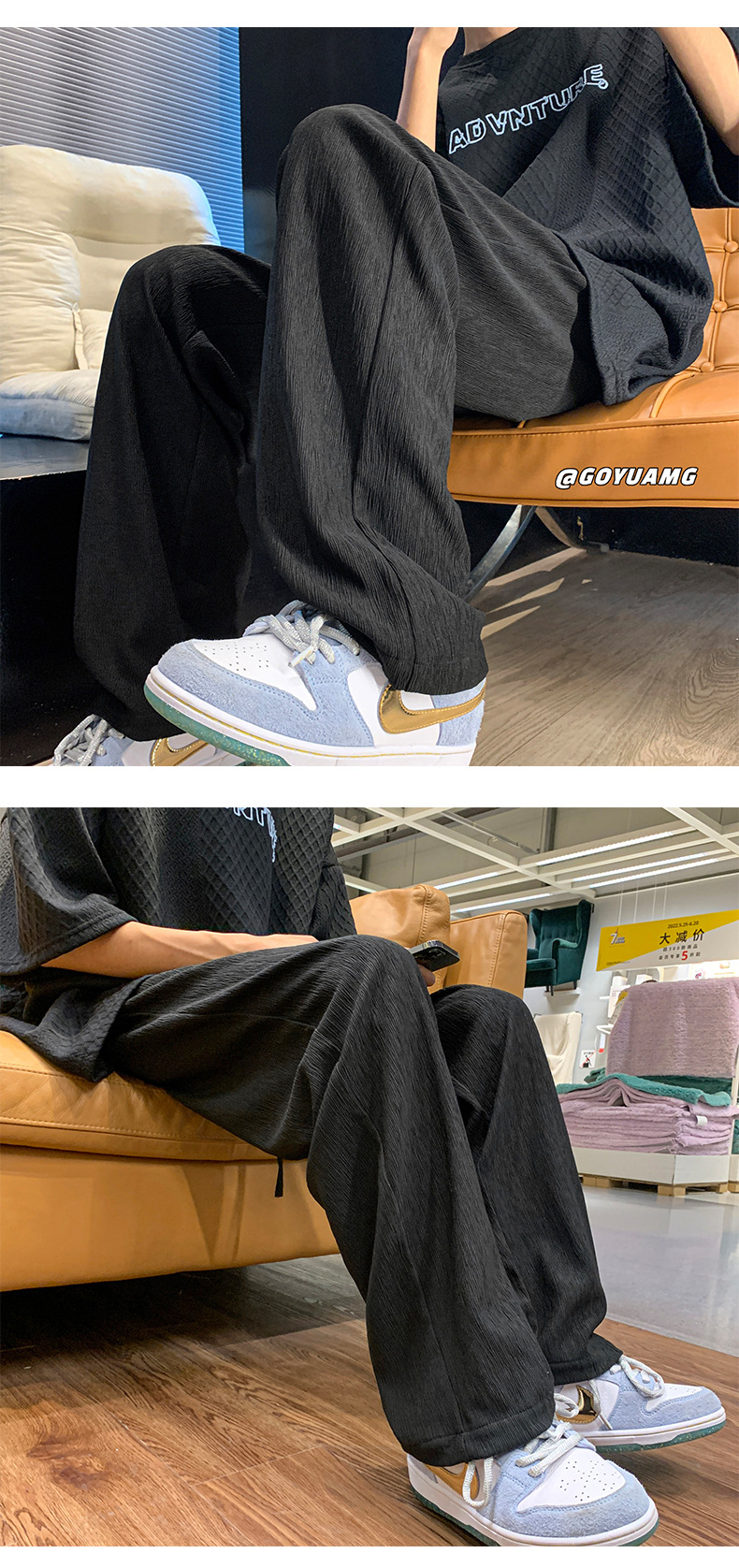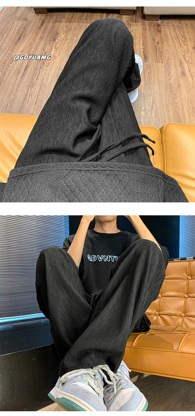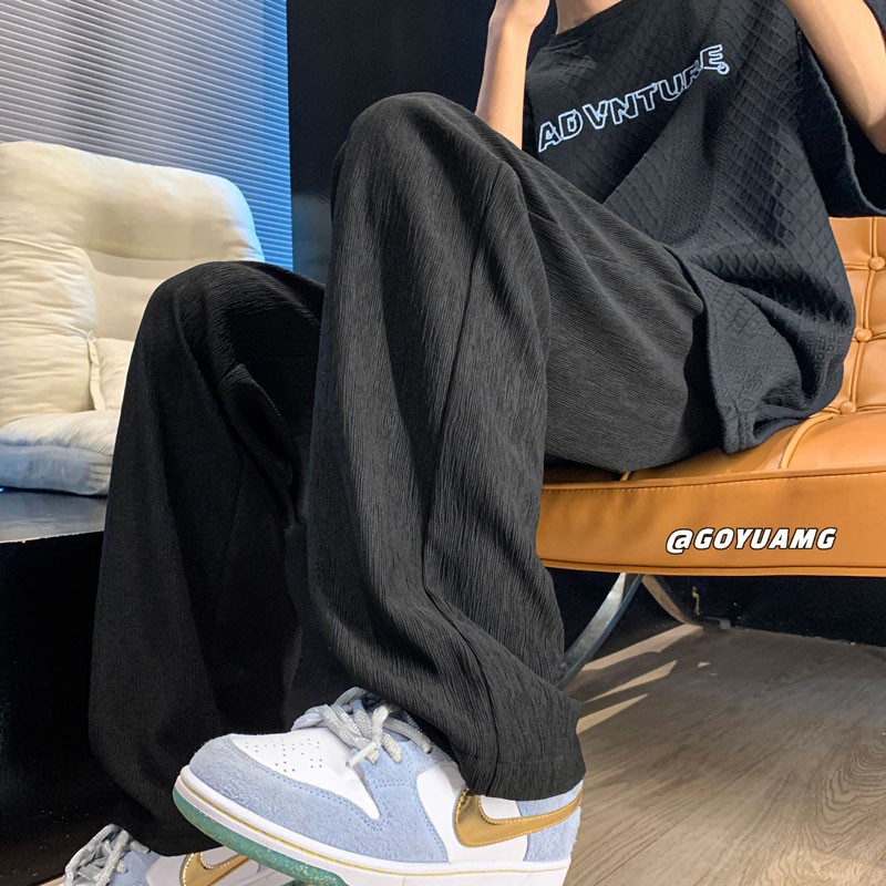아이스 실크 드레이핑 팬츠 남성용 여름 얇은 트렌디 브랜드 인 하이 스트리트 팬츠 느슨한 캐주얼 스트레이트 플로어 와이드 레그 팬츠스토어 가기
