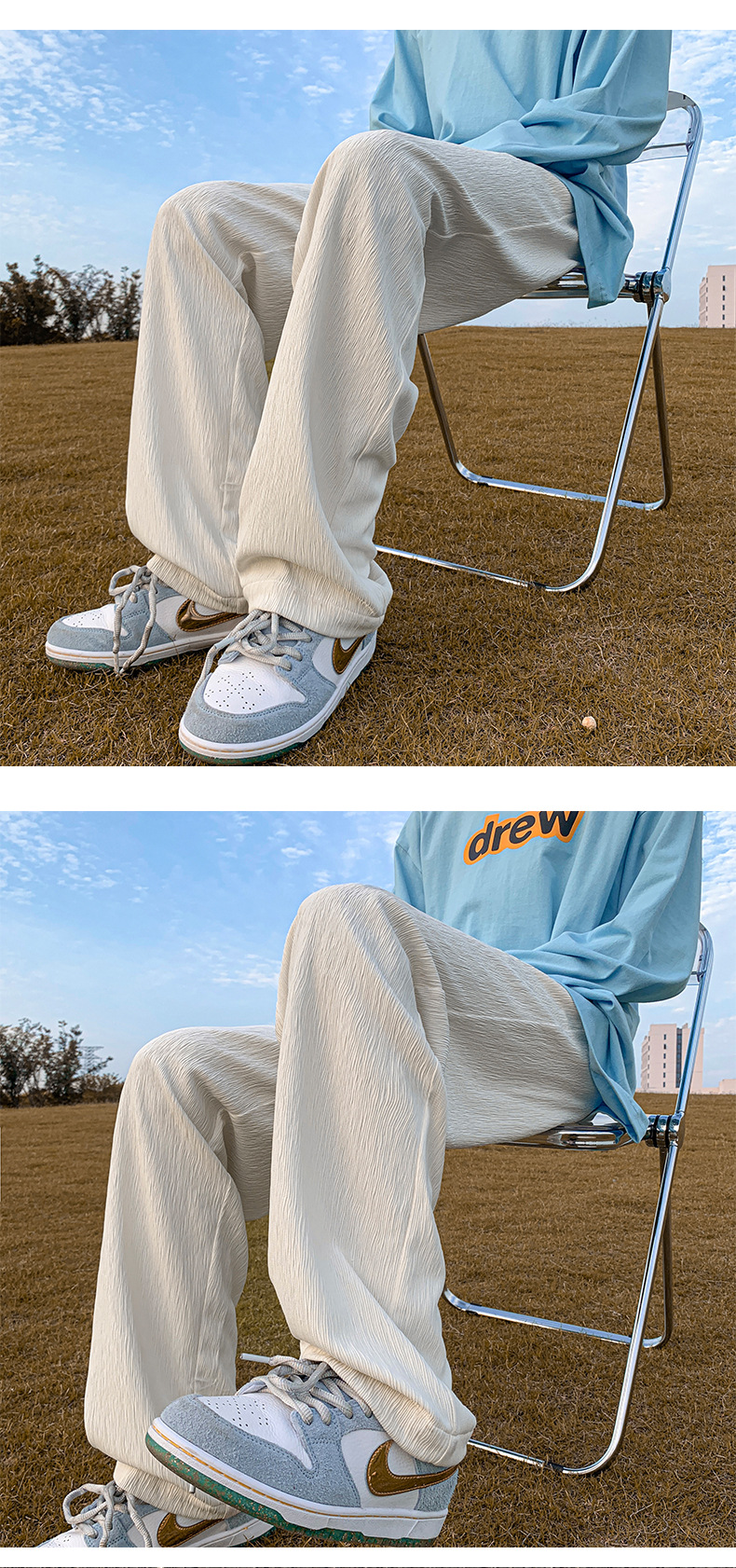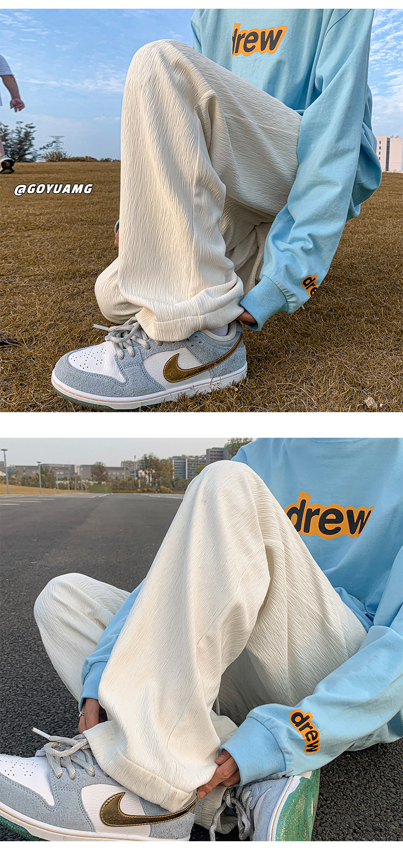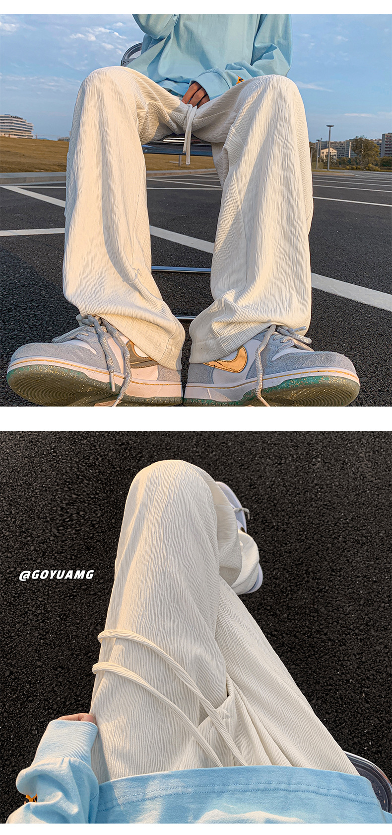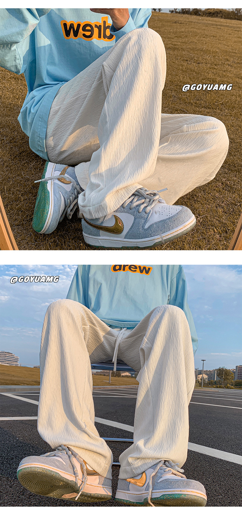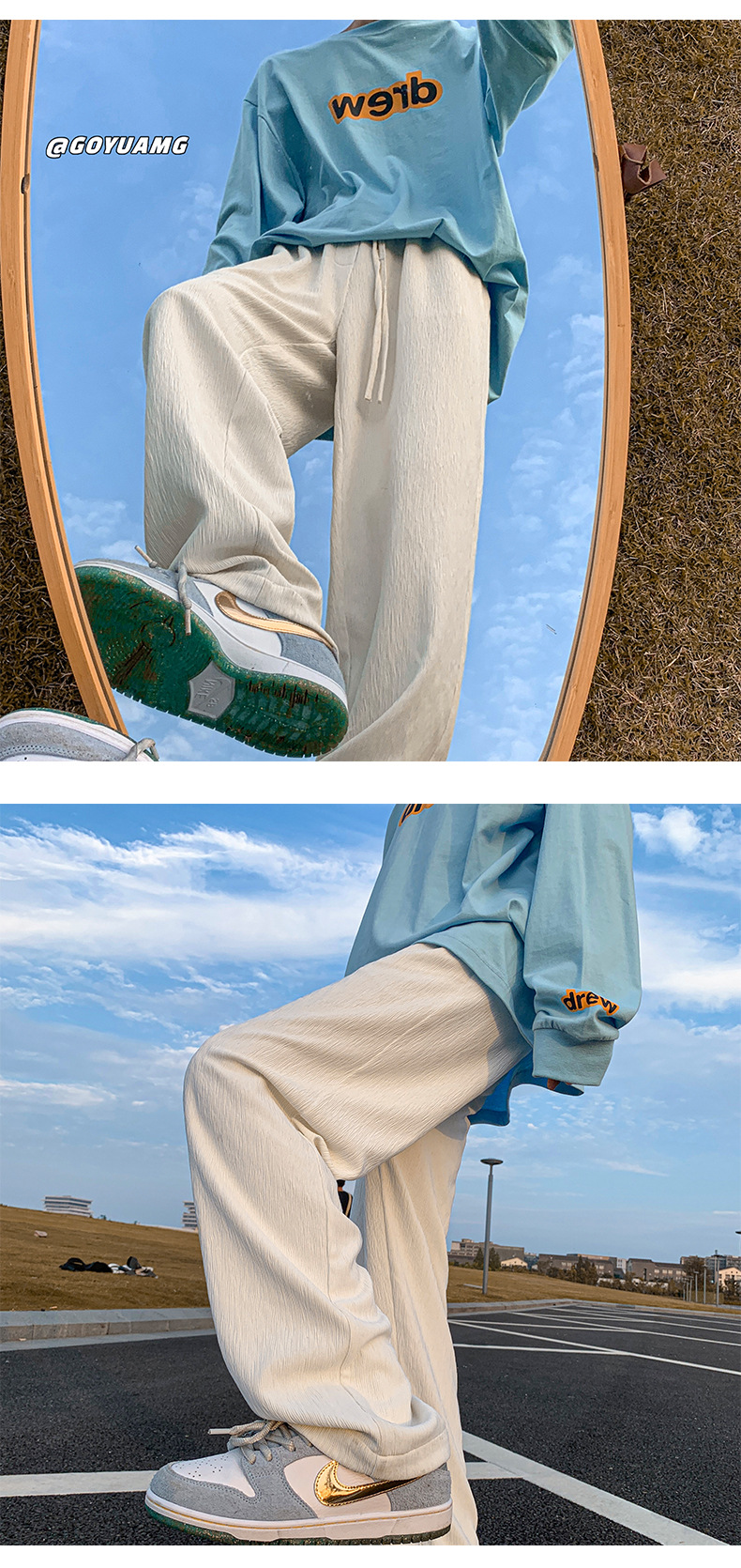 아이스 실크 드레이핑 팬츠 남성용 여름 얇은 트렌디 브랜드 인 하이 스트리트 팬츠 느슨한 캐주얼 스트레이트 플로어 와이드 레그 팬츠스토어 가기