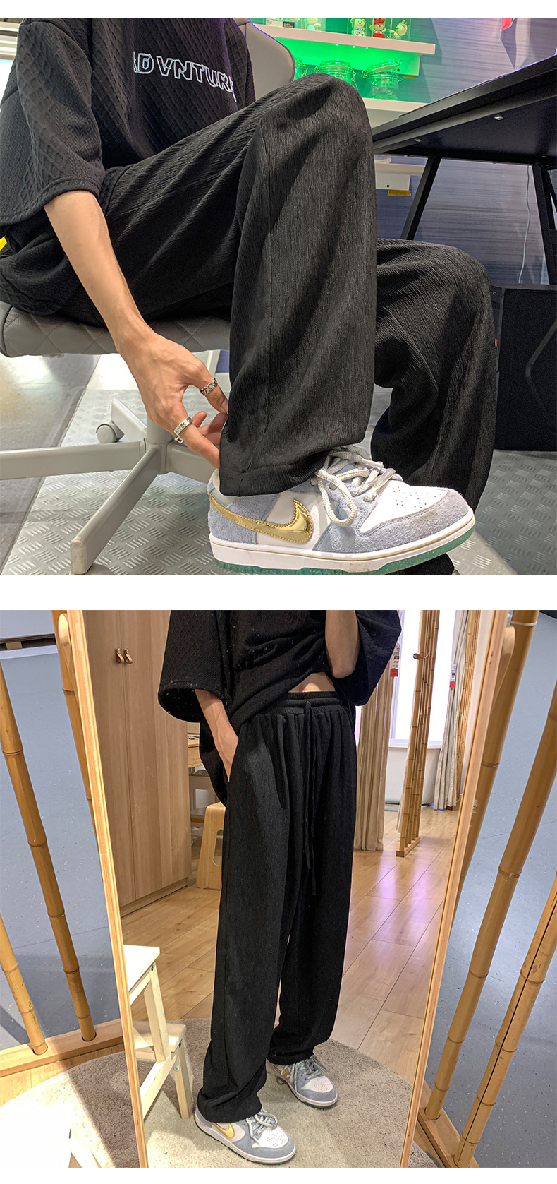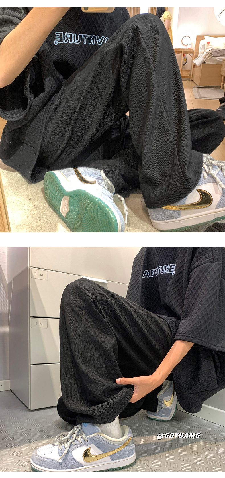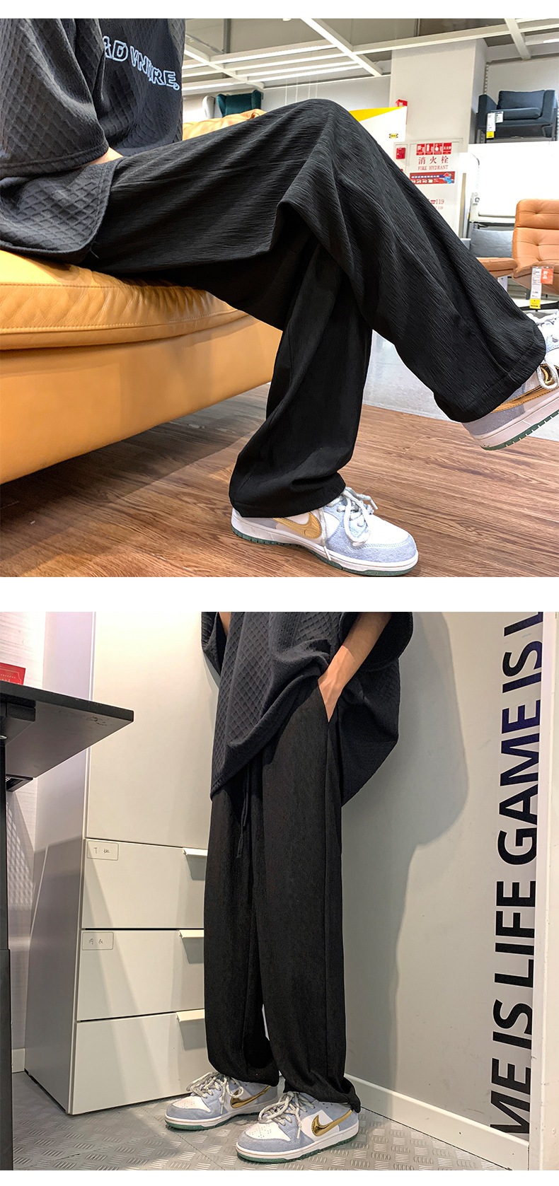 冰丝垂感裤子男夏季薄款潮牌ins高街长裤宽松休闲直筒拖地阔腿裤