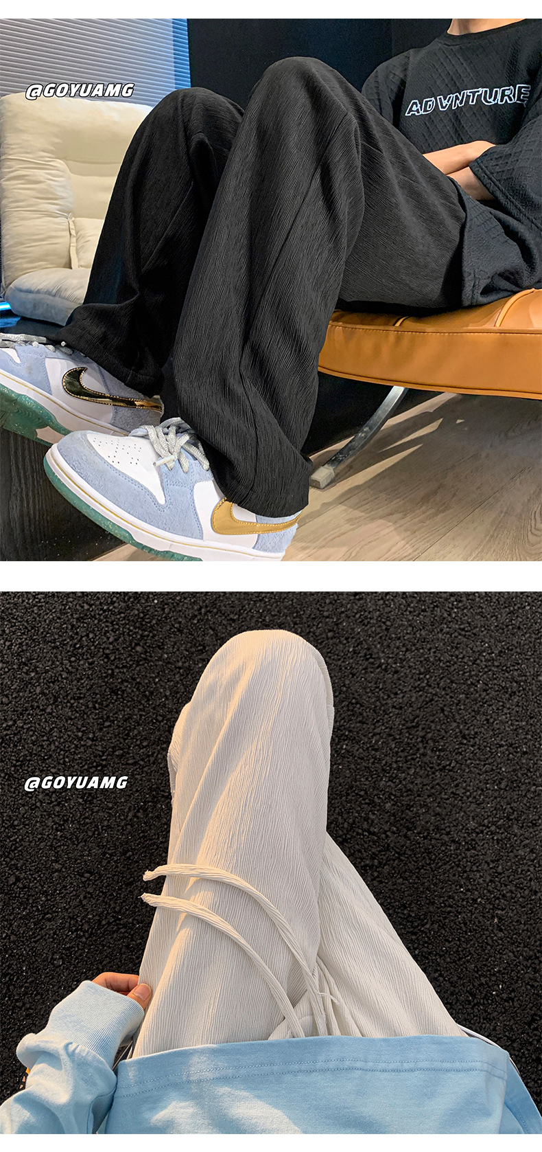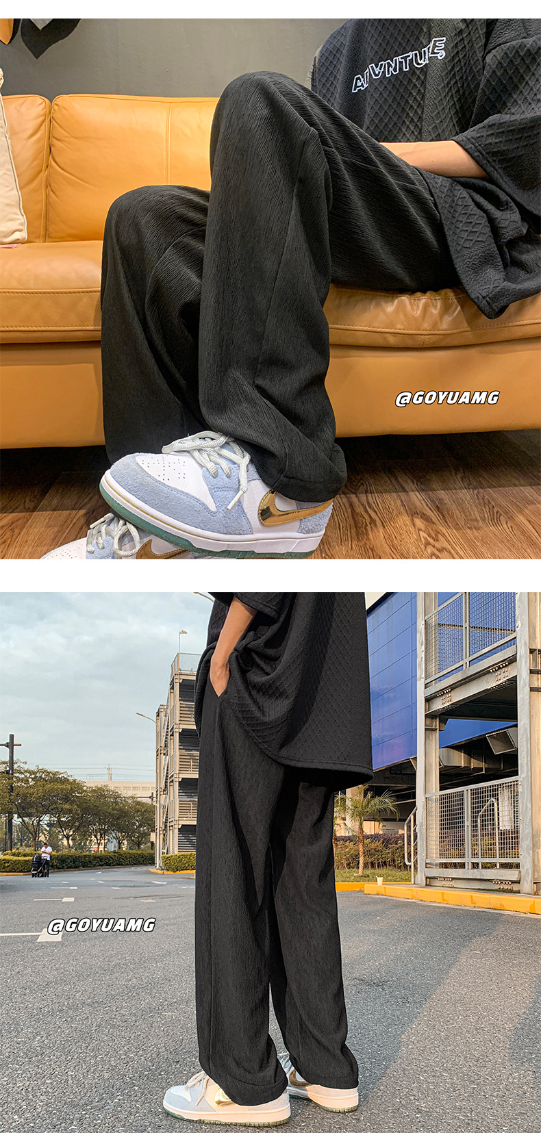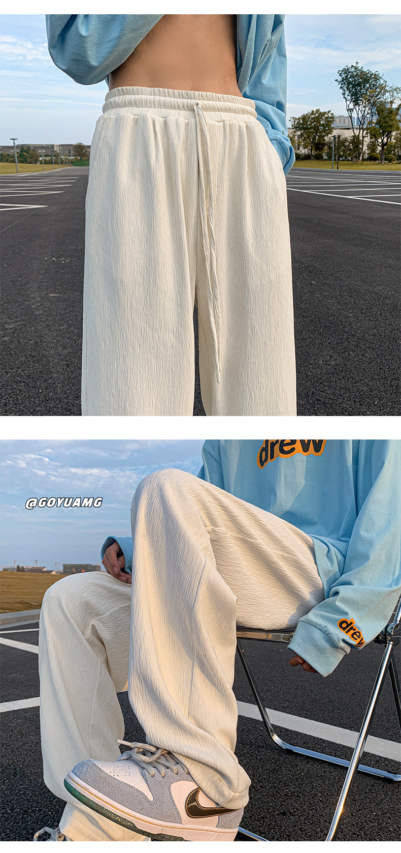 冰丝垂感裤子男夏季薄款潮牌ins高街长裤宽松休闲直筒拖地阔腿裤