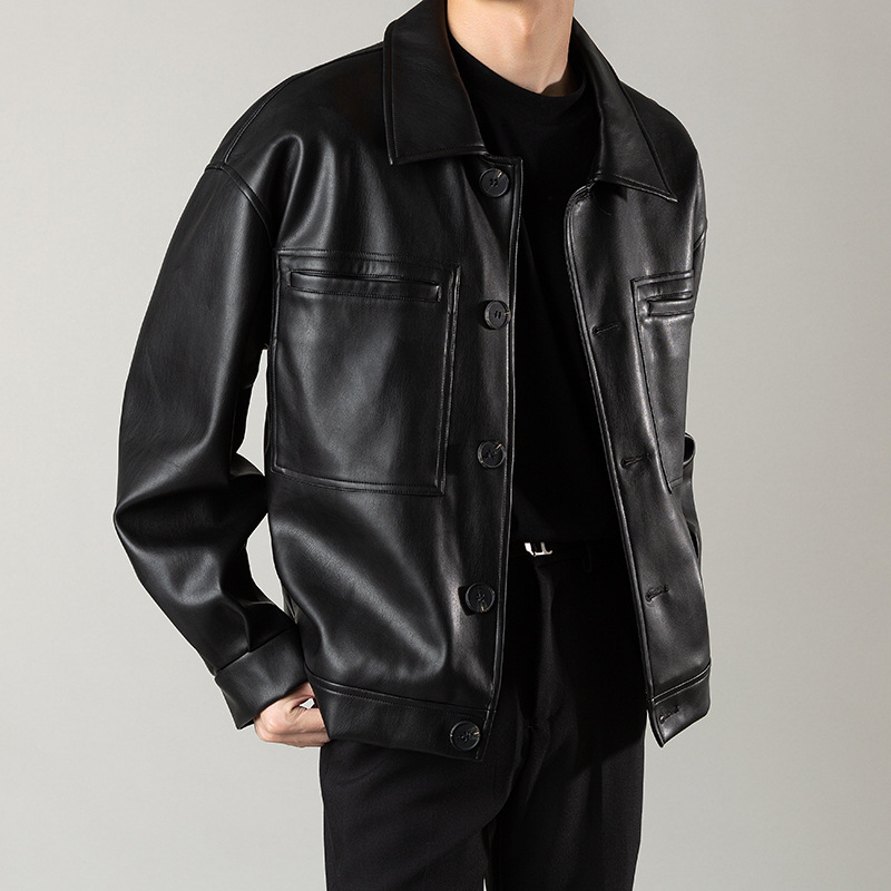 가을 빛 성숙한 스타일 남자의 가죽 의류 남자의 한국 유행 오토바이 PU 재킷 캐주얼 잘 생긴 봄과 가을 가죽 자켓스토어 가기
