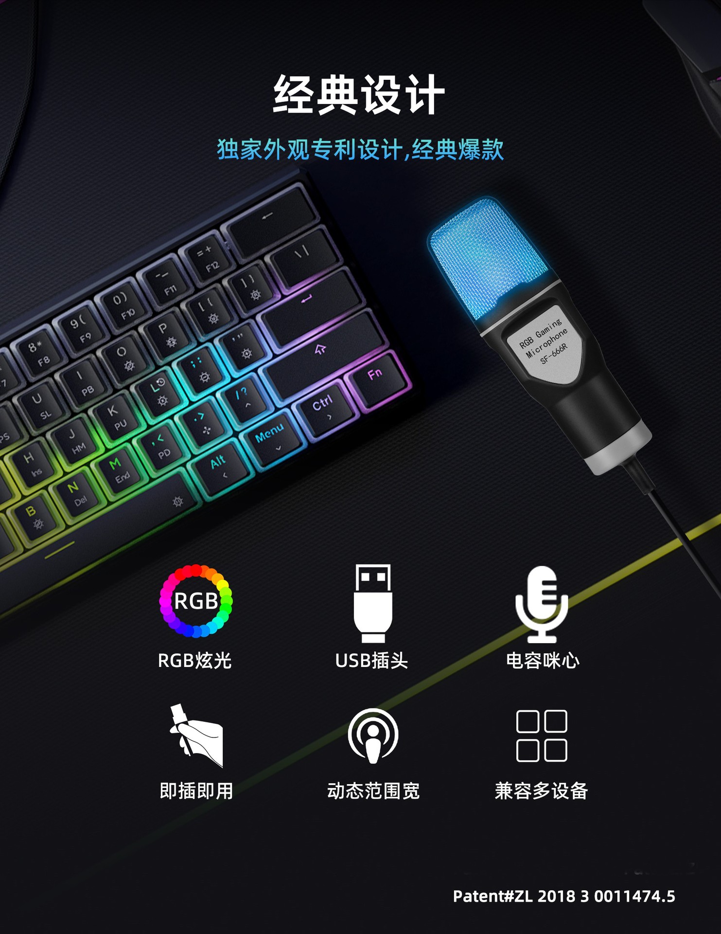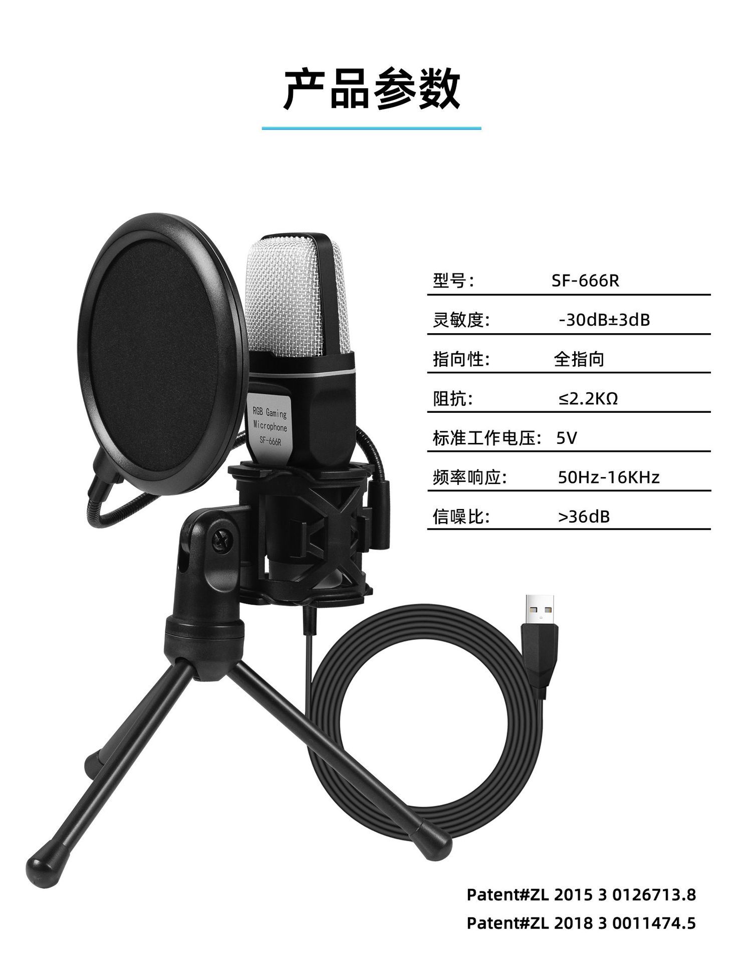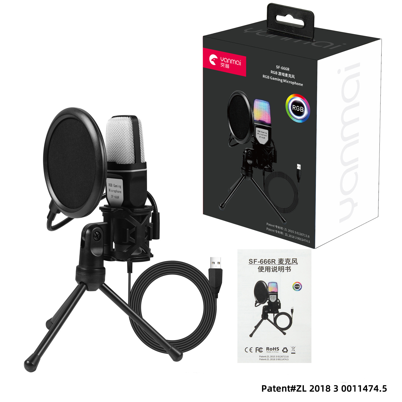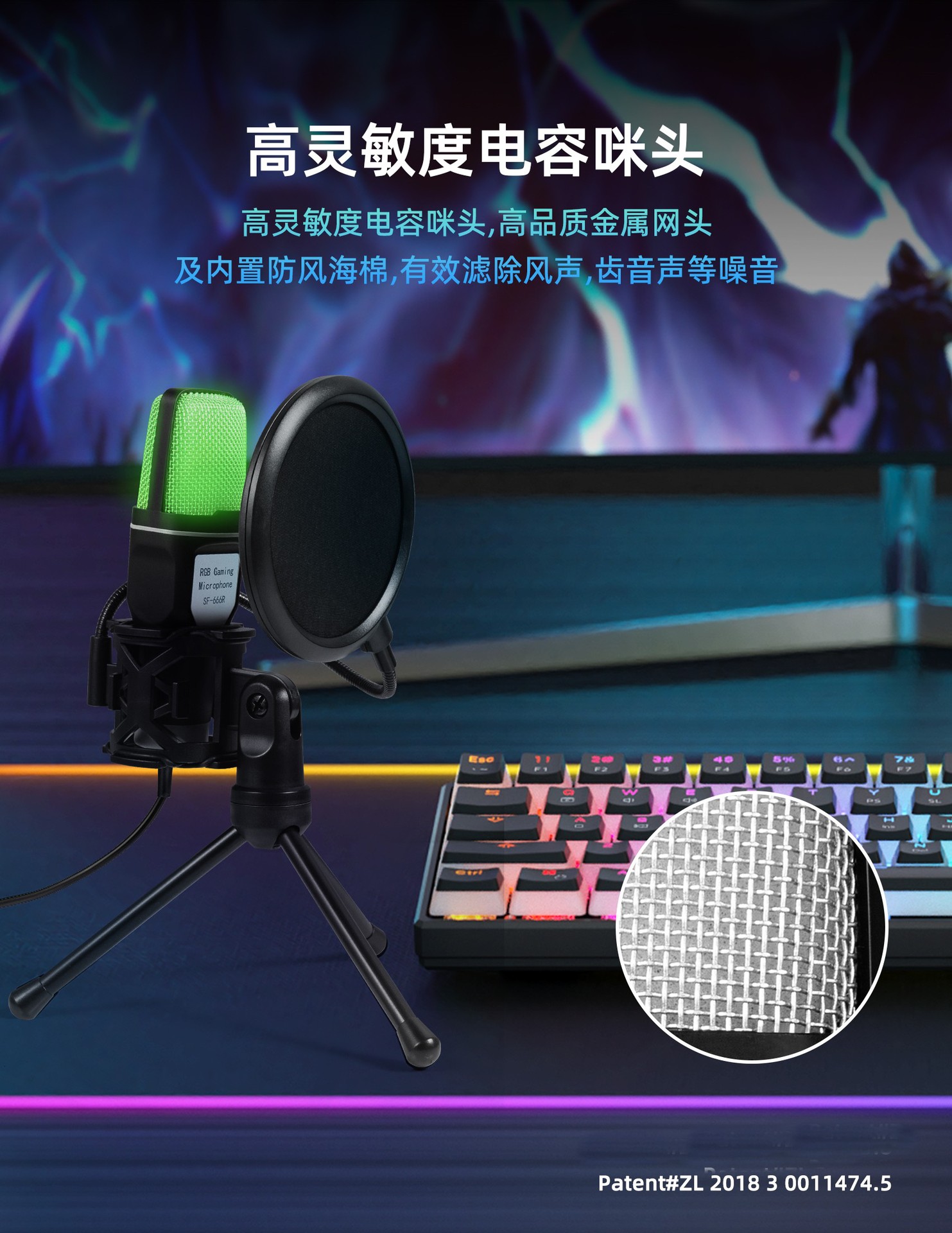 RGB 게임 e-스포츠 SF-666R 컴퓨터 데스크탑 콘덴서 마이크 전용 국경 간 인기 있는 대외 무역 제품