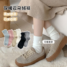 袜子女冬季保暖云朵绒袜简约纯色拉毛中筒袜百搭网红厂家批发