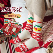 2023新款新年袜可爱小清新圣诞袜红色喜庆中筒袜冬季保暖加厚袜子