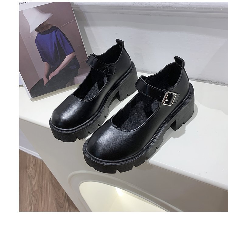 작은 가죽 신발 여성용 2022 봄 새로운 영국 아카데미 스타일 밝은 가죽 하이힐 신발 라운드 발가락 두꺼운 바닥 메리 제인 신발 여성스토어 가기