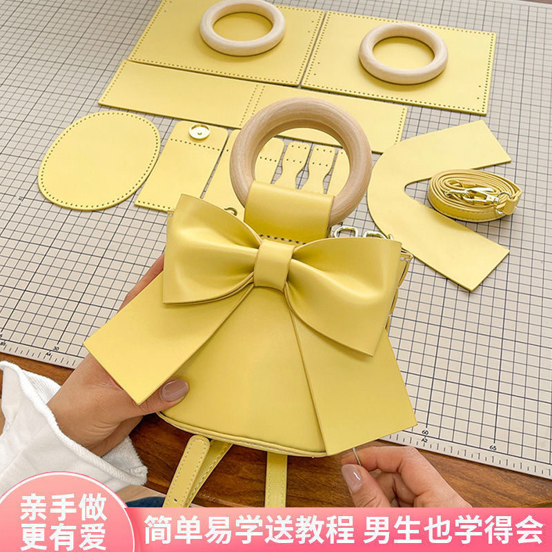 TikTok 같은 스타일 DIY 보우 백 여성의 새로운 수제 소재 가방 핸드 스티치 수제 크로스 바디 백 버킷 백
