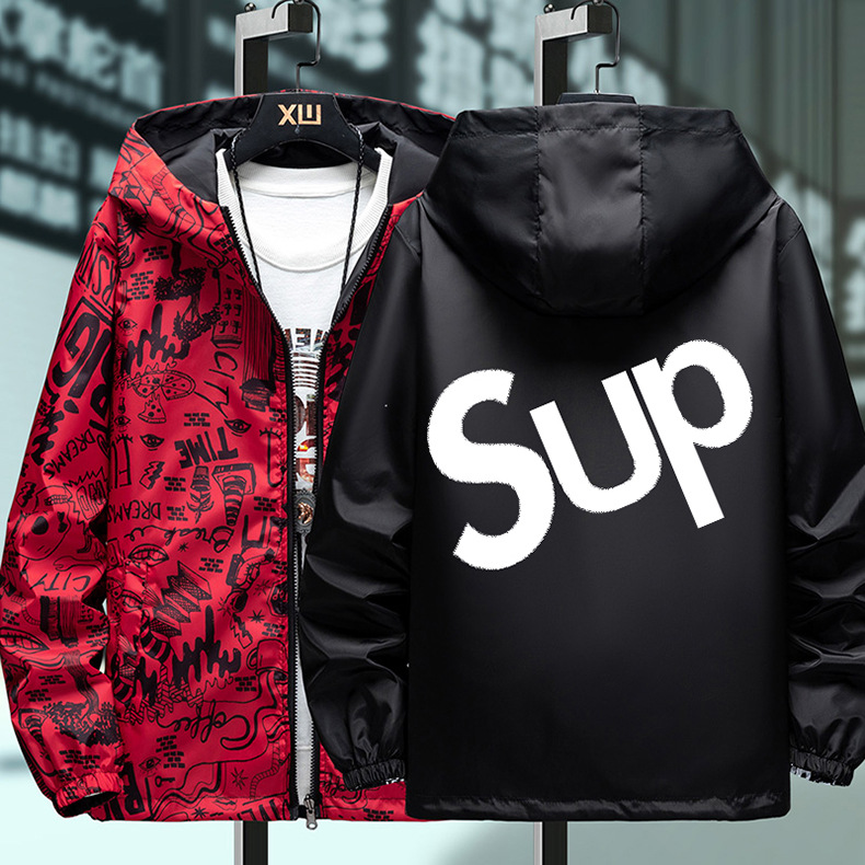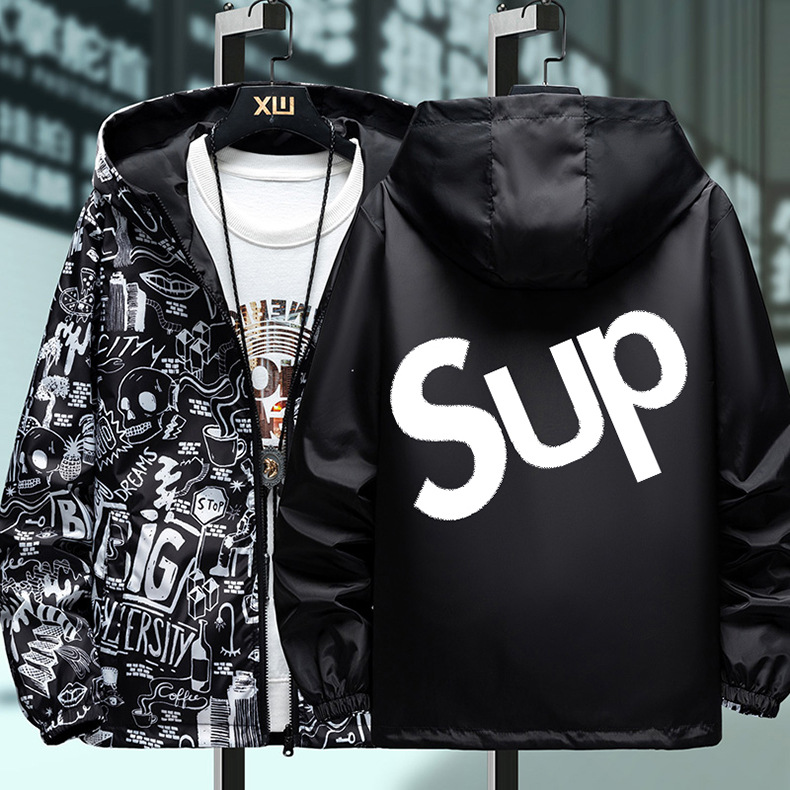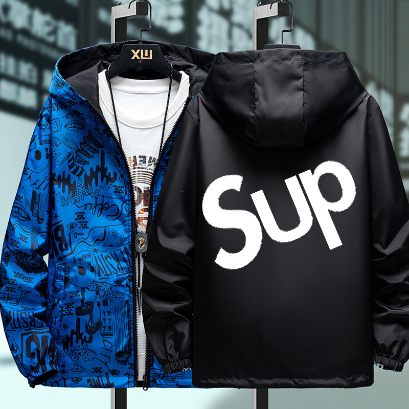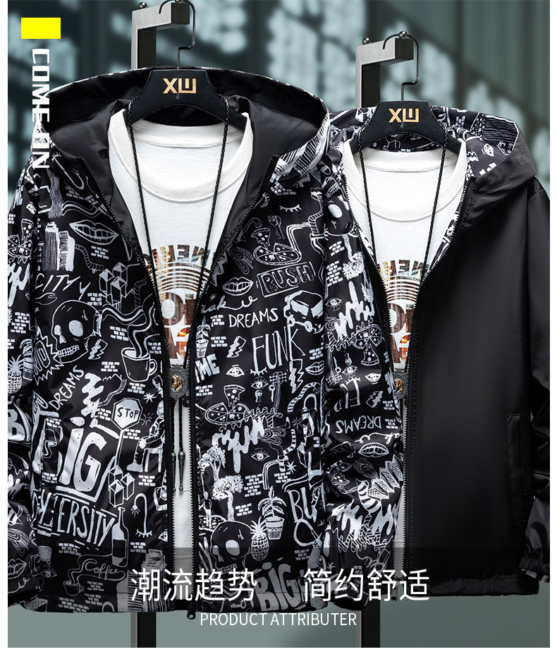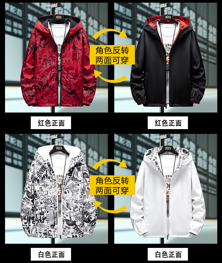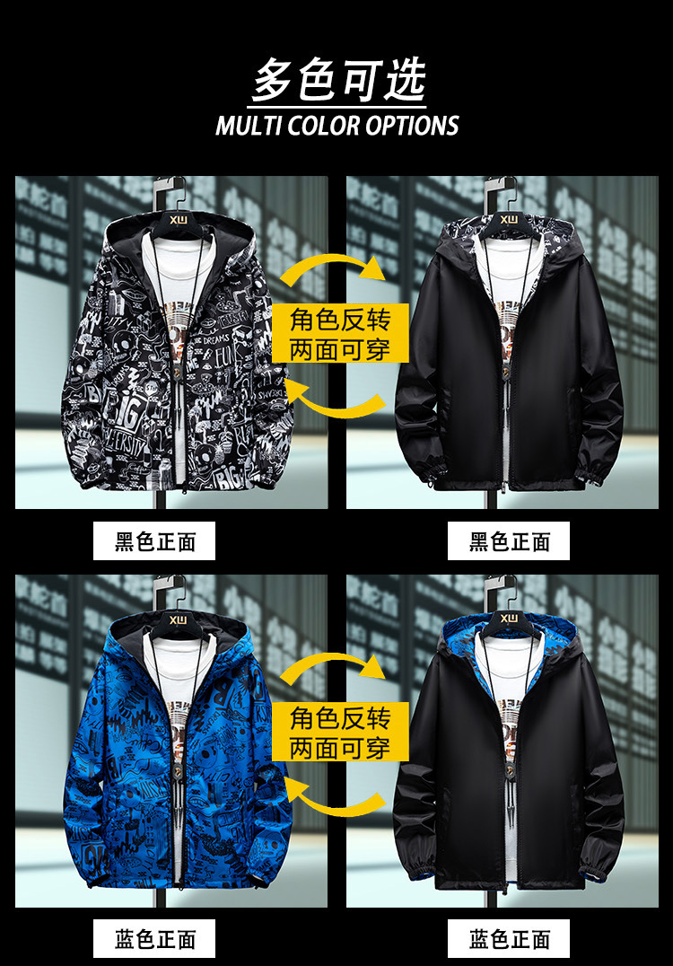 봄과 가을 학생 코트 방풍 양면 재킷 남성 십대 유행 후드 소년 코트 양면 착용스토어 가기