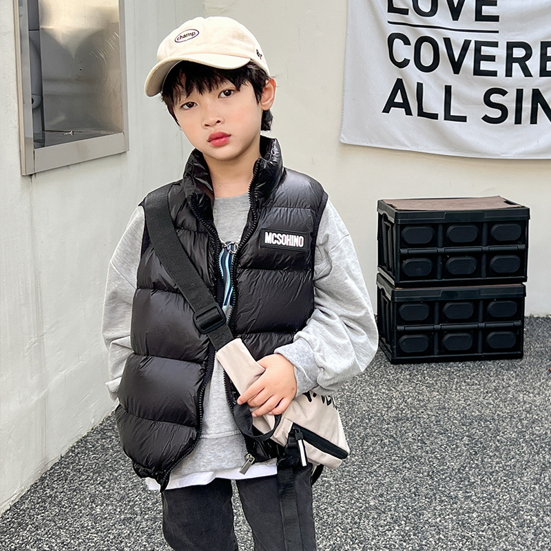 아동용 다운 조끼 남아용 2025 신상 겨울 한국 스타일 중대형 아동용 여아용 레터 조끼 자켓 도매