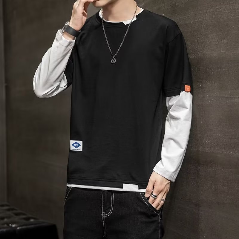 패션 브랜드 올 매치 느슨한 라운드 넥 언더 셔츠 패션 2022 가을, 가짜 투피스 긴팔 티셔츠스토어 가기