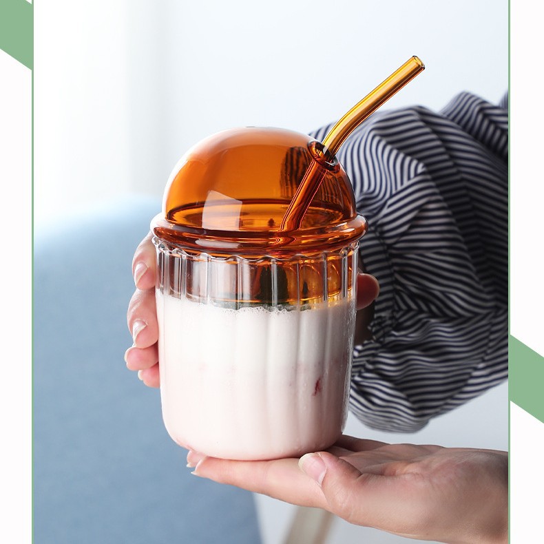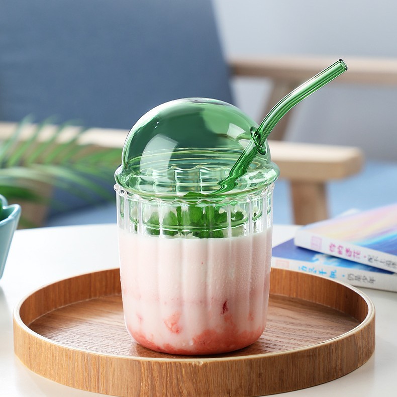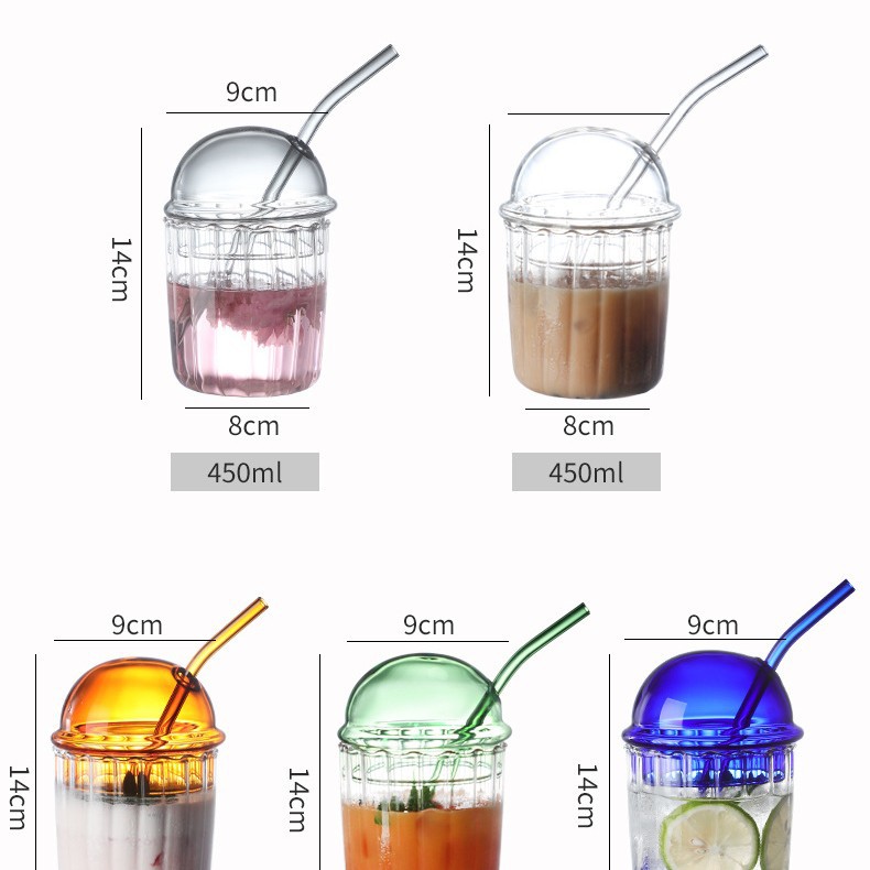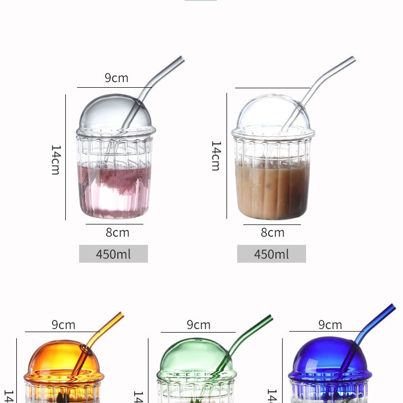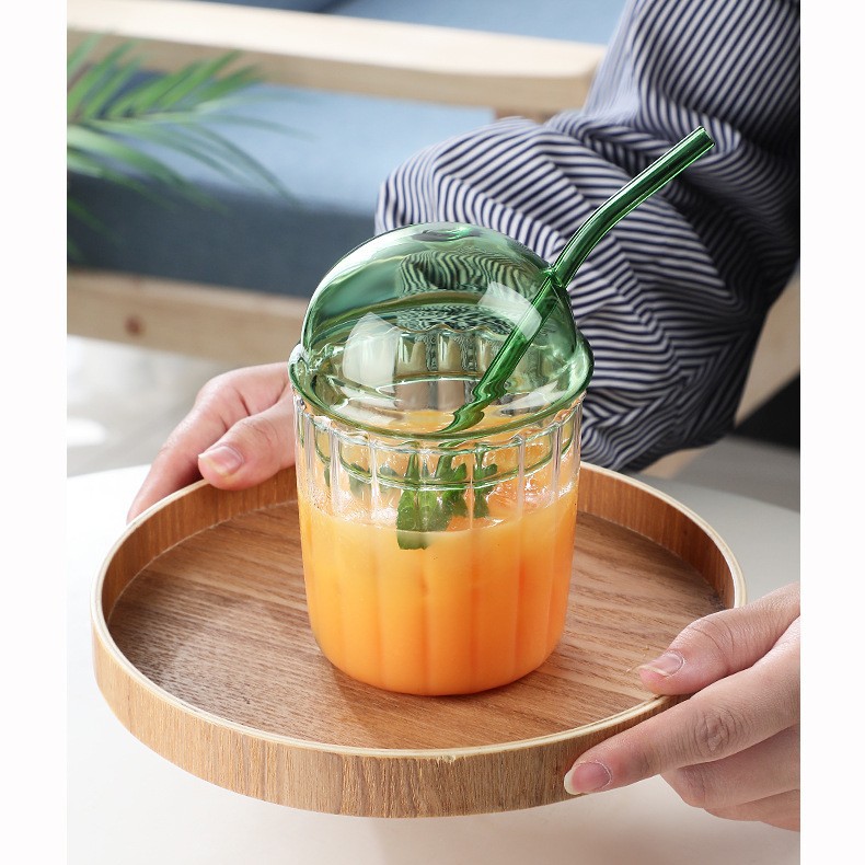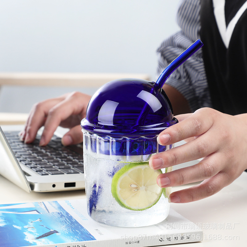 크리 에이 티브 보 웨이브 컵 밀짚 차가운 음료 컵 수직 스트라이프 유리 우유 티 컵 높은 색상 가치 스타일 간단한 주스 컵