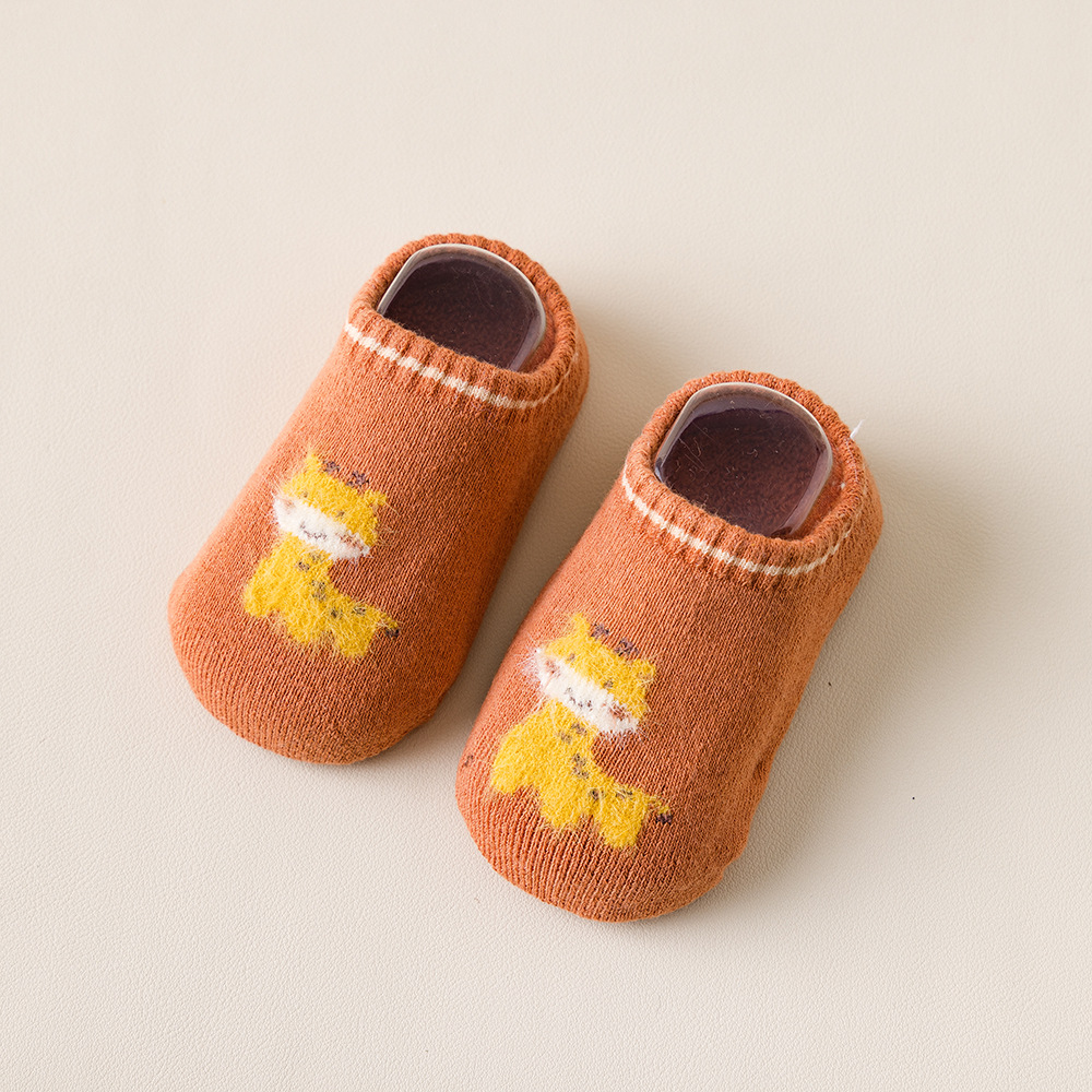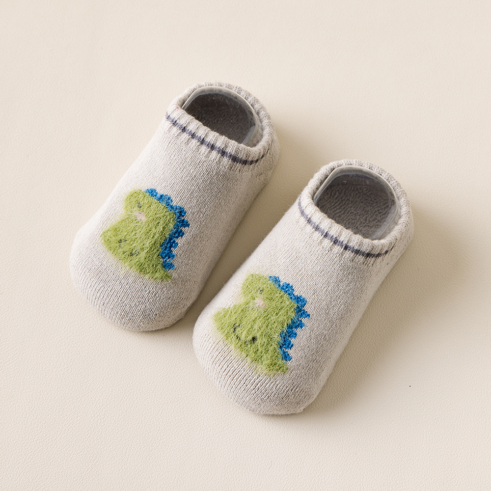 한국 아기 바닥 양말 만화 봉제 두꺼운 공룡 가을과 겨울 유아 실리콘 분배 바닥 유아 양말 보트 양말