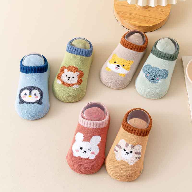 한국 아기 바닥 양말 만화 봉제 두꺼운 공룡 가을과 겨울 유아 실리콘 분배 바닥 유아 양말 보트 양말스토어 가기
