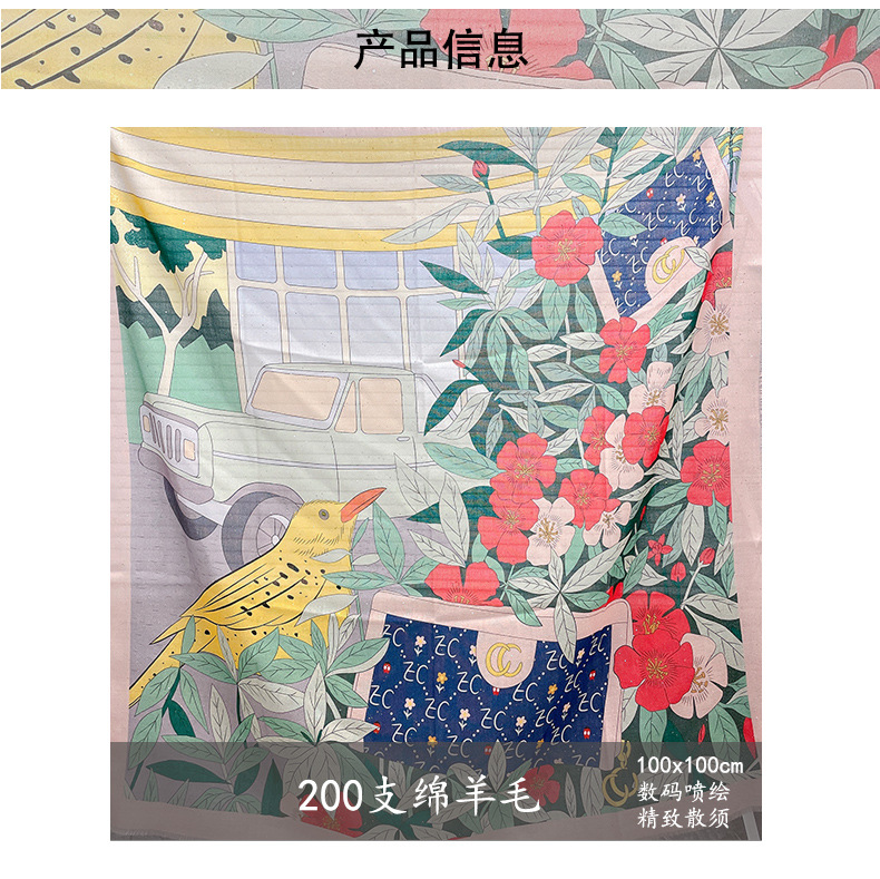 새와 꽃 맛 플래시 수용성 양모 절묘한 패션 기질 스퀘어 얇은 스카프 우아한 여성의 작은 숄