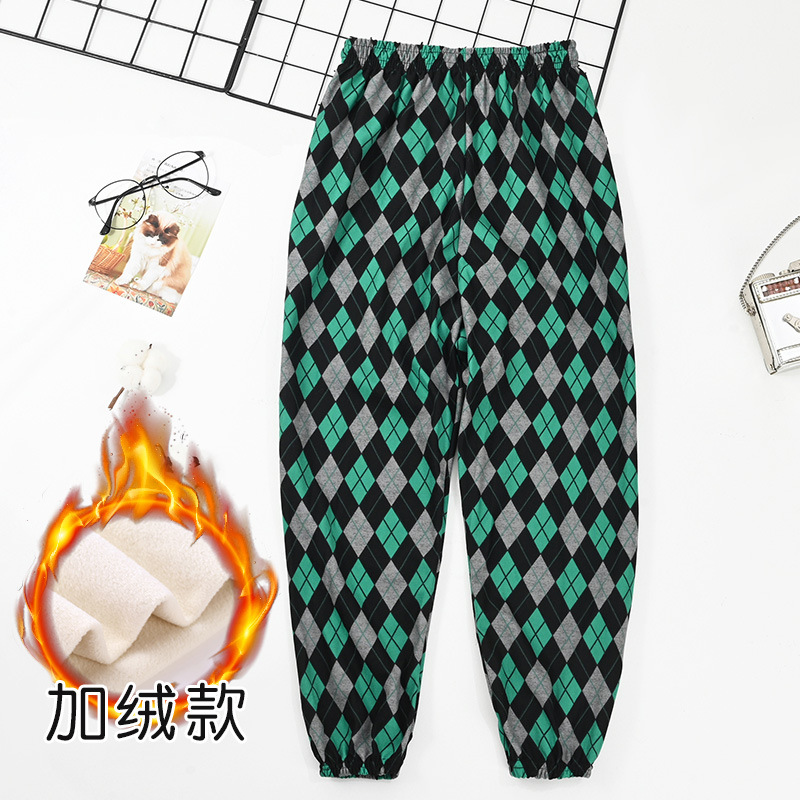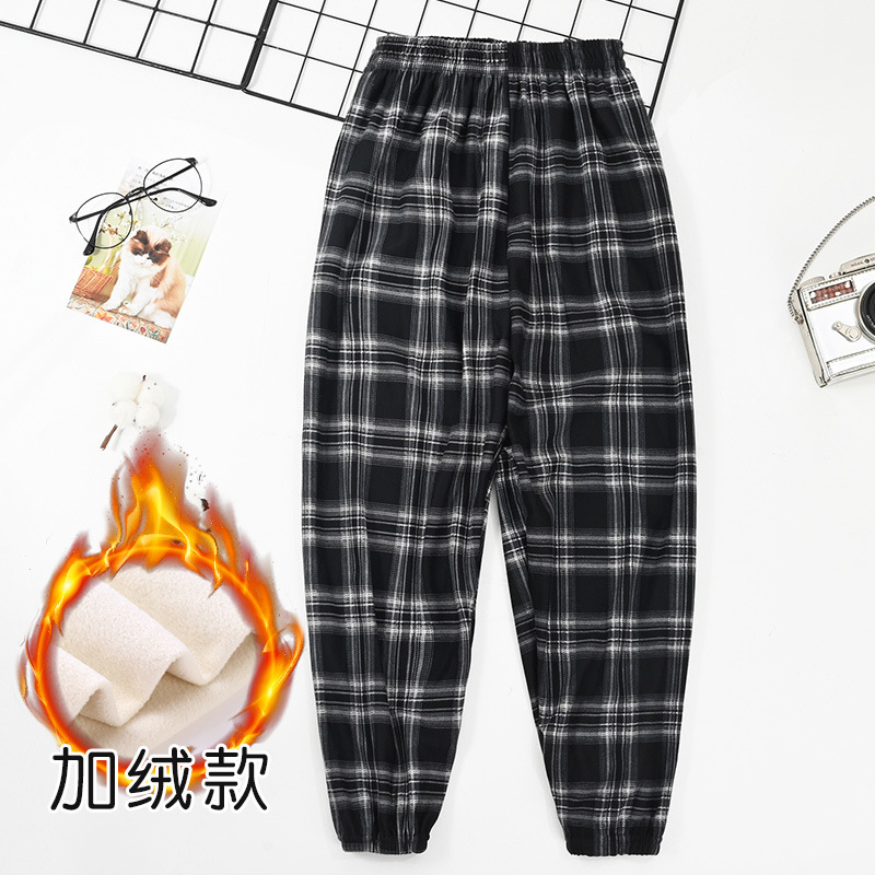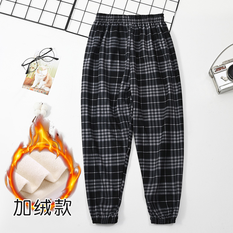 가을 새로운 어린이 캐주얼 바지 격자 무늬 겉옷 따뜻한 기모 두꺼운 소녀 바지 패션 유행 소년 바지스토어 가기
