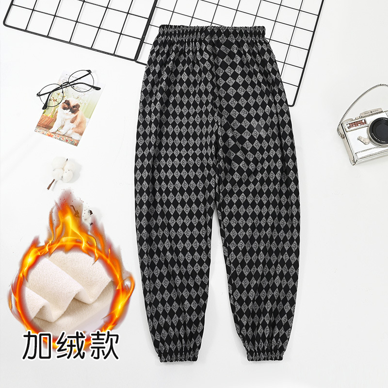 가을 새로운 어린이 캐주얼 바지 격자 무늬 겉옷 따뜻한 기모 두꺼운 소녀 바지 패션 유행 소년 바지