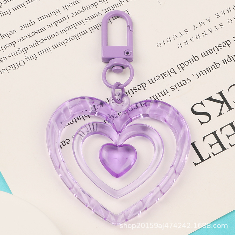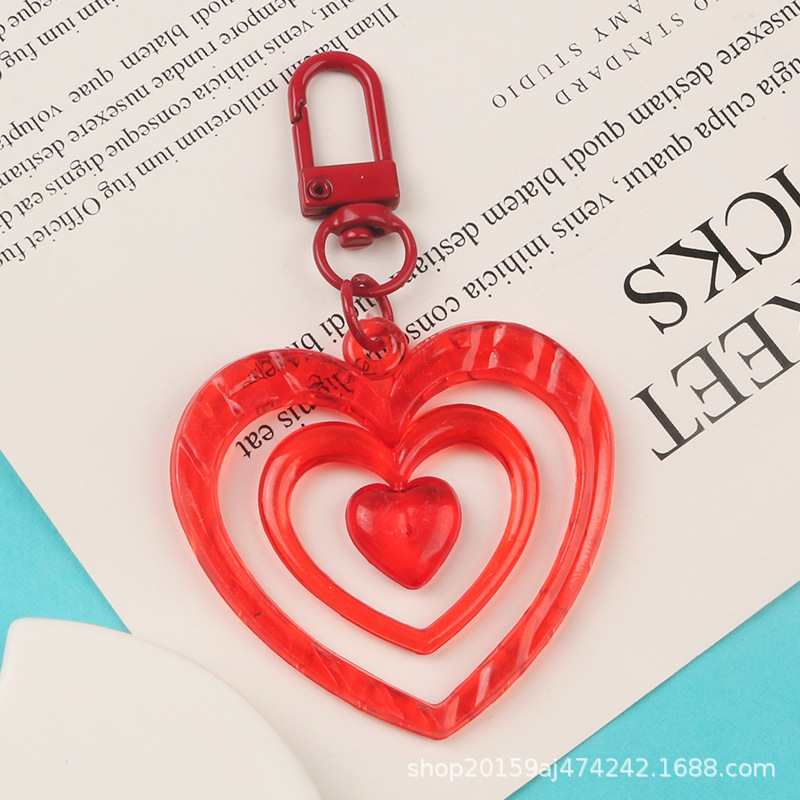 새로운 컬러 중공 사랑 자동차 키 체인 펜던트 신선한 단색 복숭아 심장 아크릴 액세서리 가방 장식스토어 가기